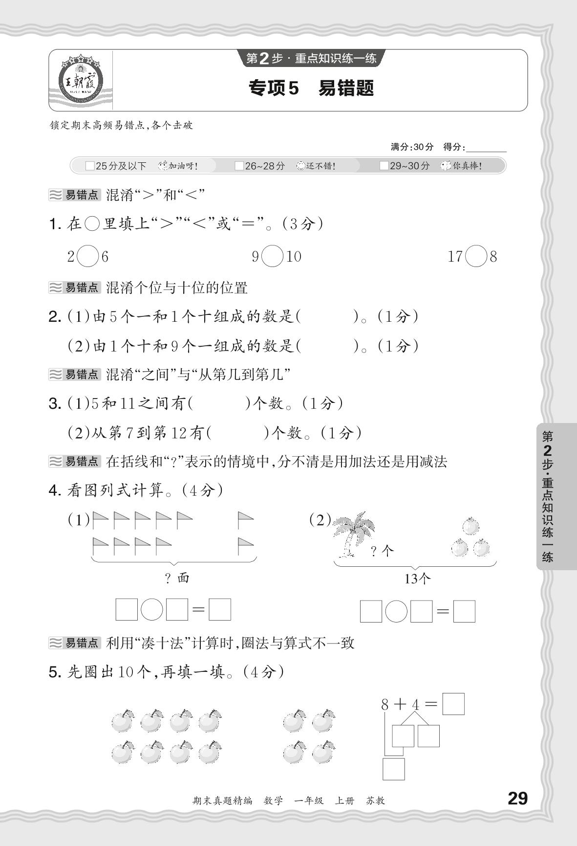 2023秋上册一年级数学苏教版 期末专项卷JB版·易错题【5】