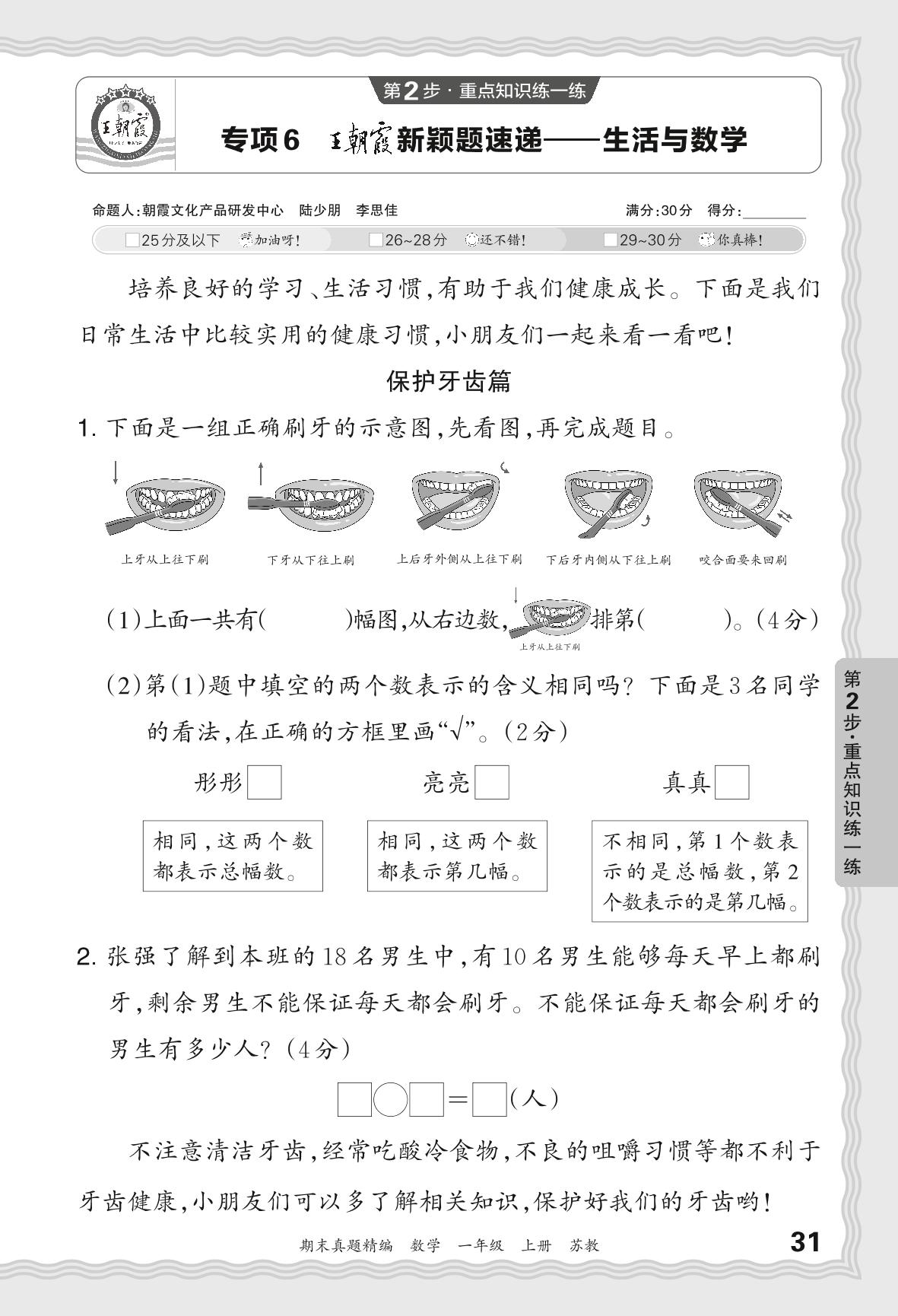 2023秋上册一年级数学苏教版 期末专项卷JB版·王朝霞新颖题速递——生活与数学【6】