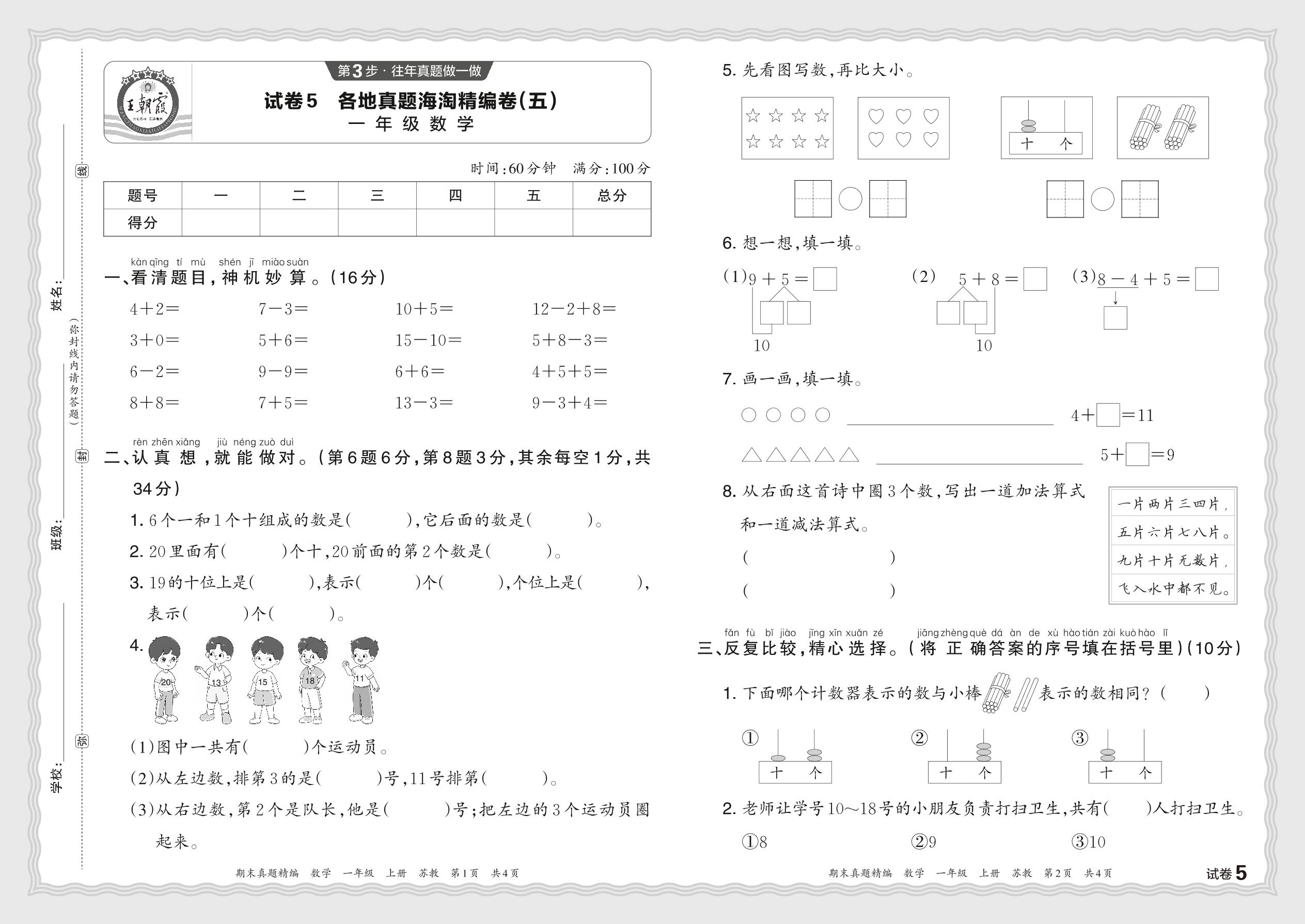 2023秋上册一年级数学苏教版 各地真题海淘精编卷(五)JB