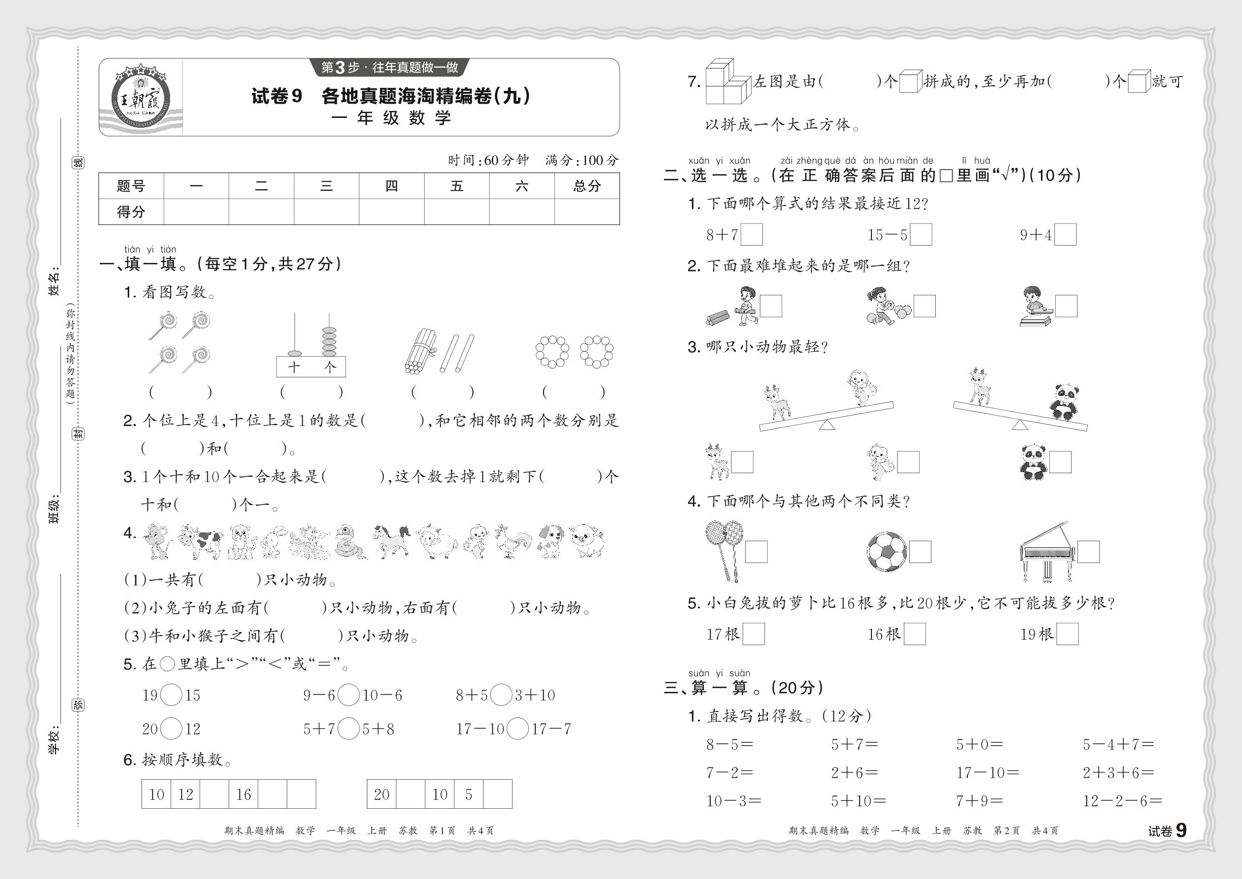 2023秋上册一年级数学苏教版 各地真题海淘精编卷(九)JB