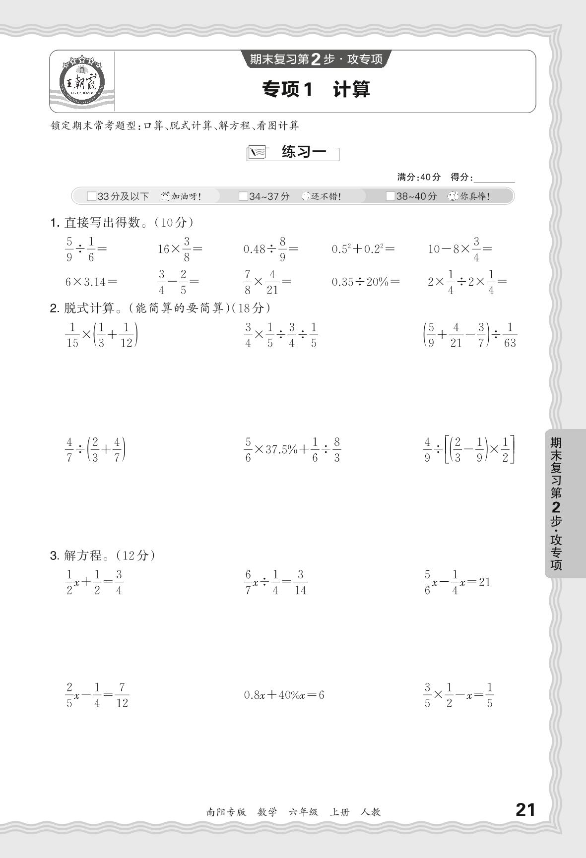 2023秋上册六年级数学人教版 期末专项卷·计算_R231125150154098【1】