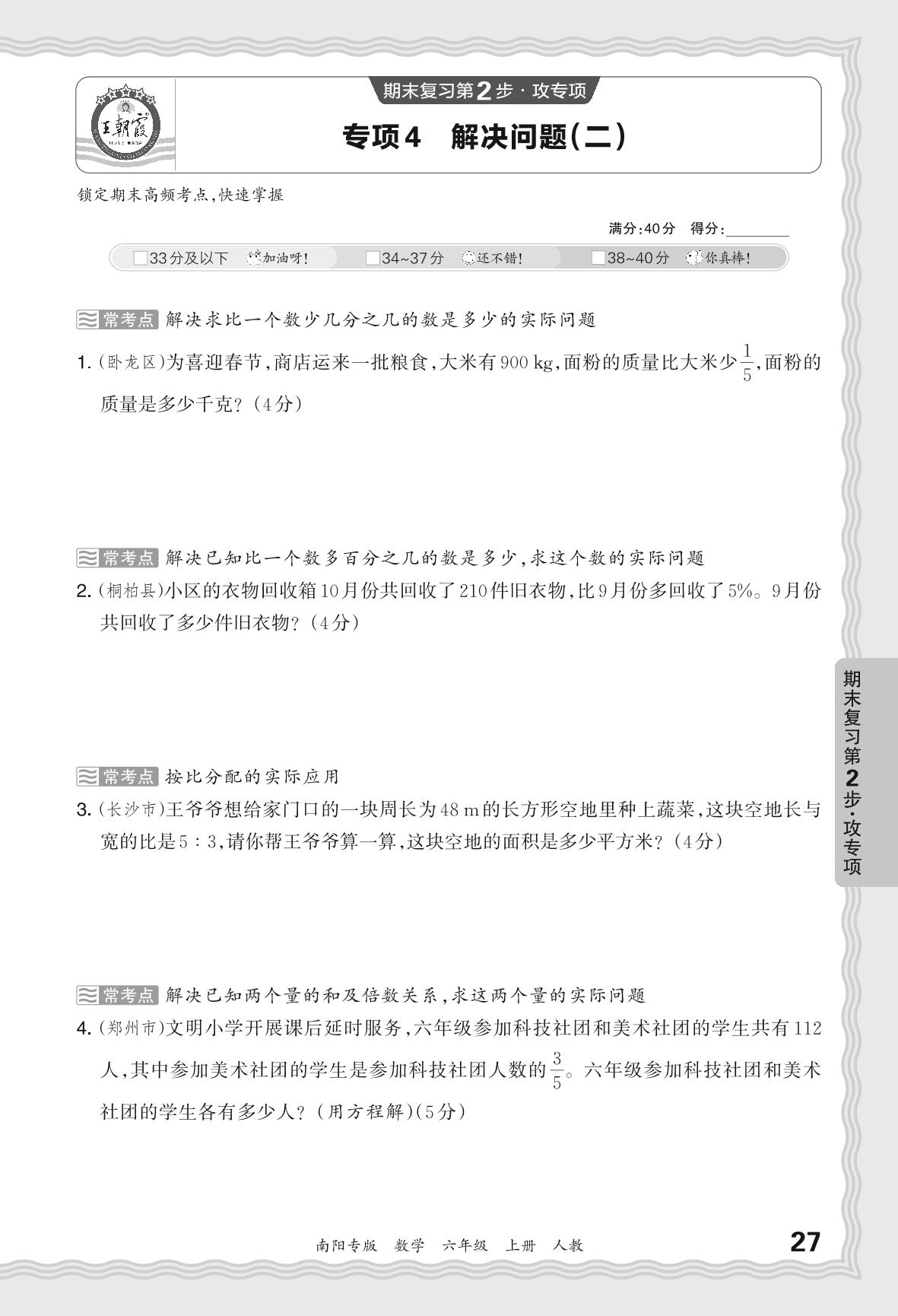 2023秋上册六年级数学人教版 期末专项卷·解决问题(二)_R231125150155963【4】