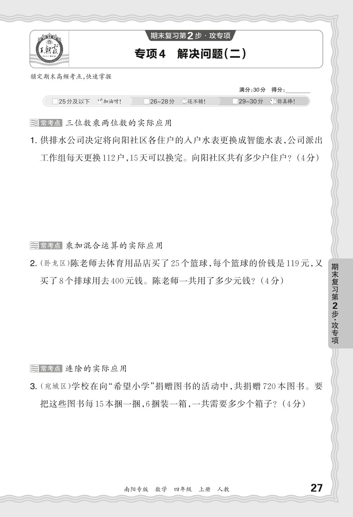 2023秋上册四年级数学人教版 期末专项卷·解决问题(二)_R231125154512124【4】