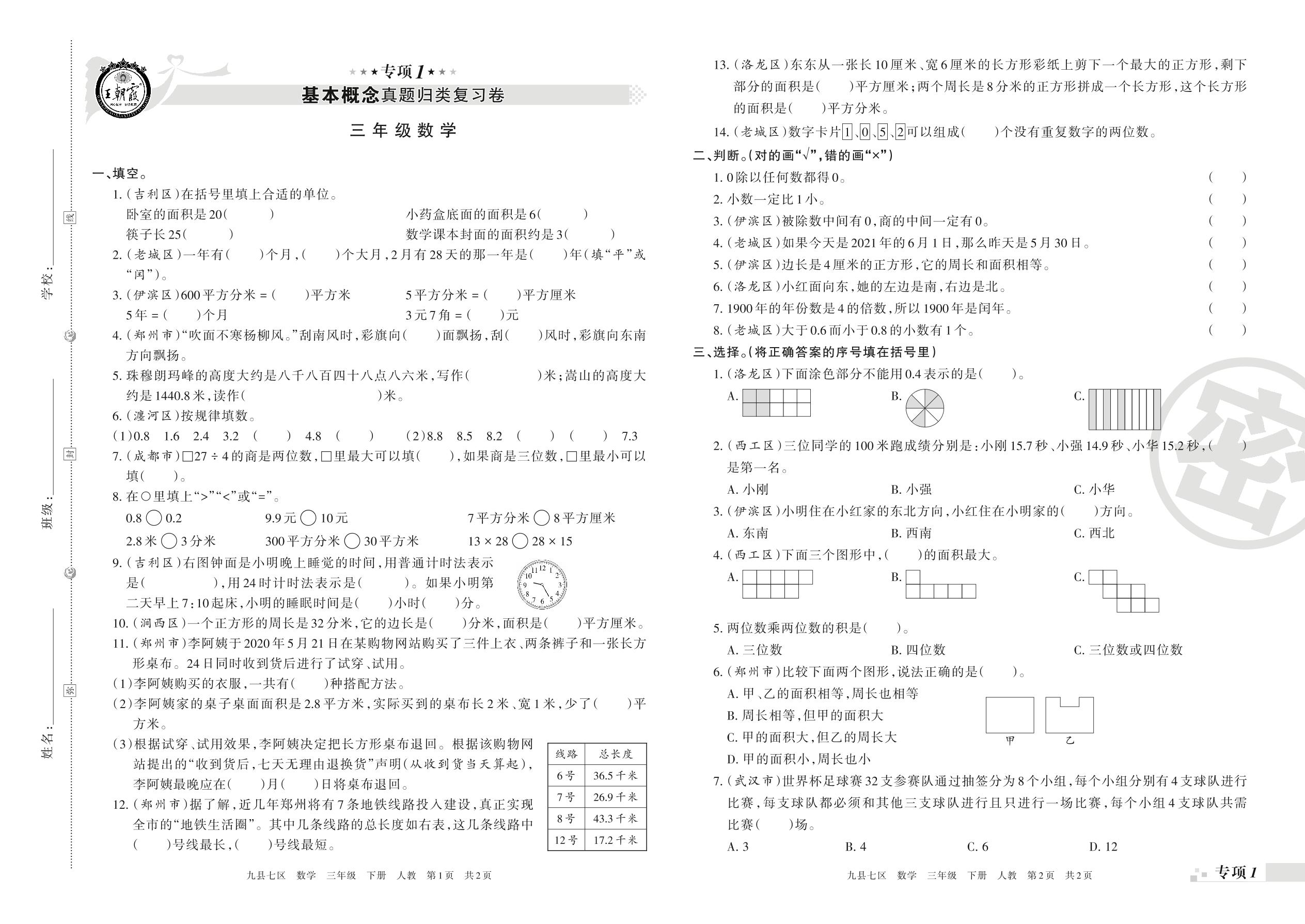 王朝霞期末专项卷——基本概念、计算真题归类复习三年级下册数学(人教版)_R21080484836【0】