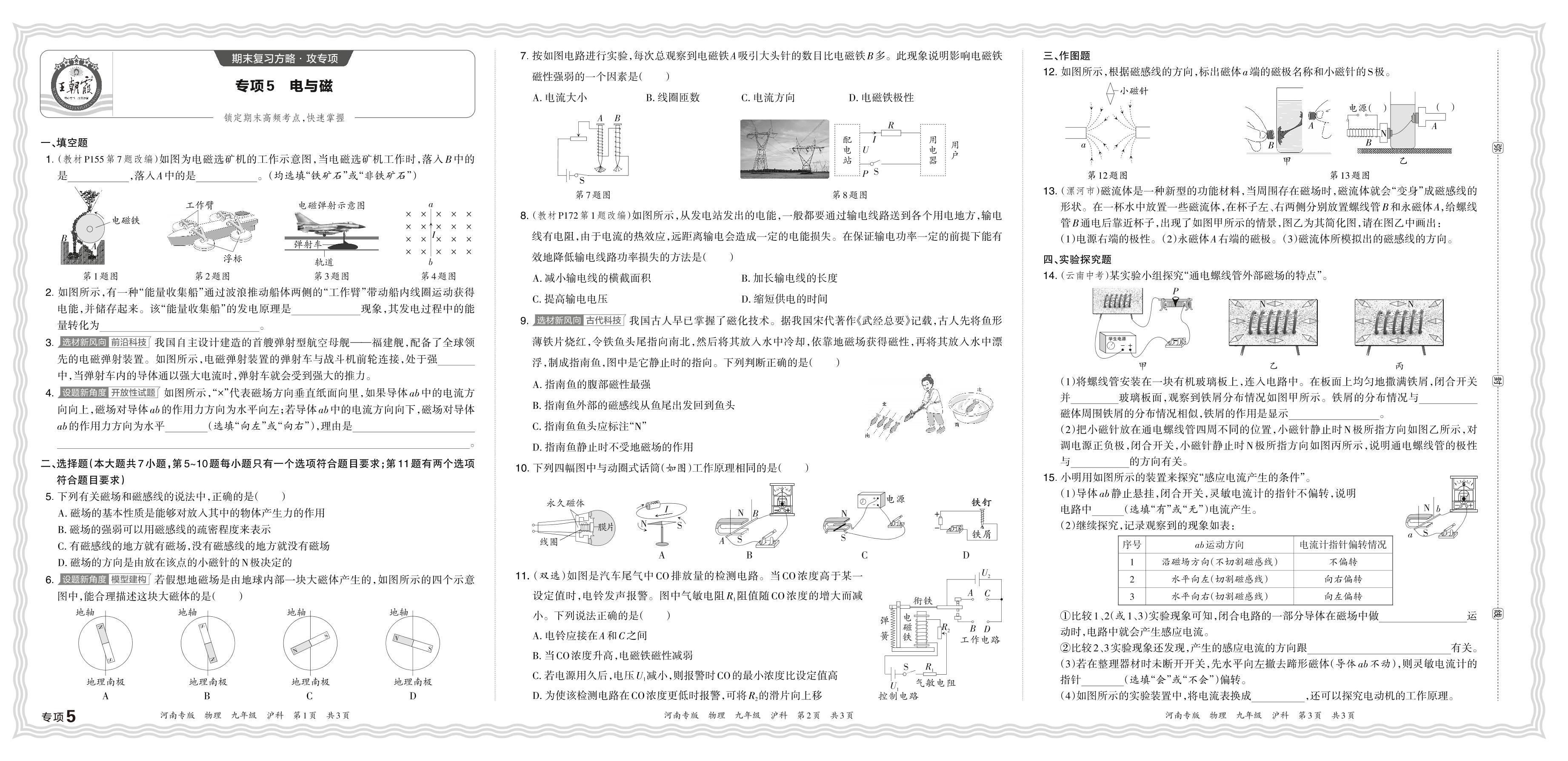 2023秋上册九年级物理沪科版 期末专项卷·电与磁【5】