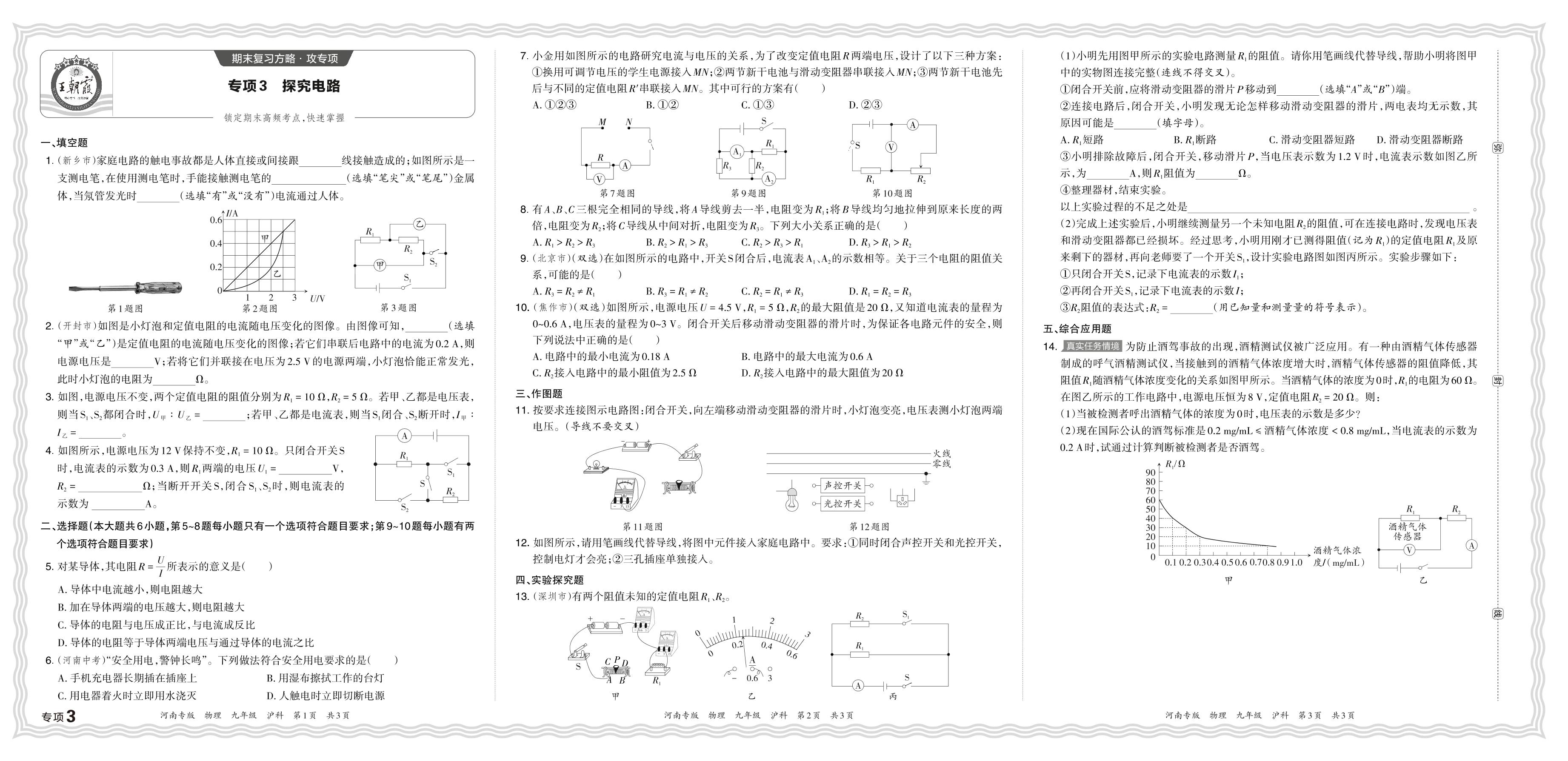 2023秋上册九年级物理沪科版 期末专项卷·探究电路【3】