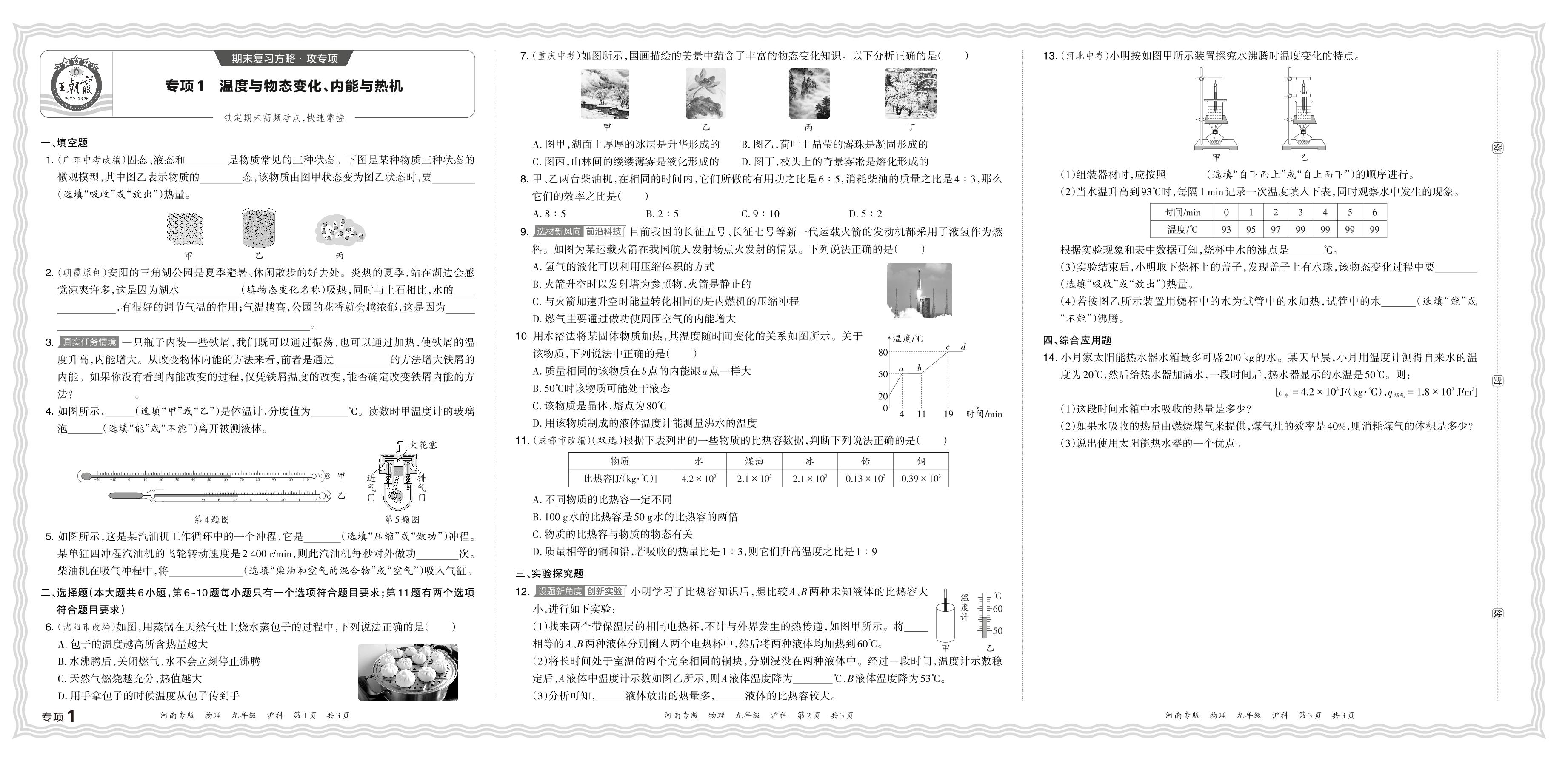 2023秋上册九年级物理沪科版 期末专项卷·温度与物态变化、内能与热机【1】