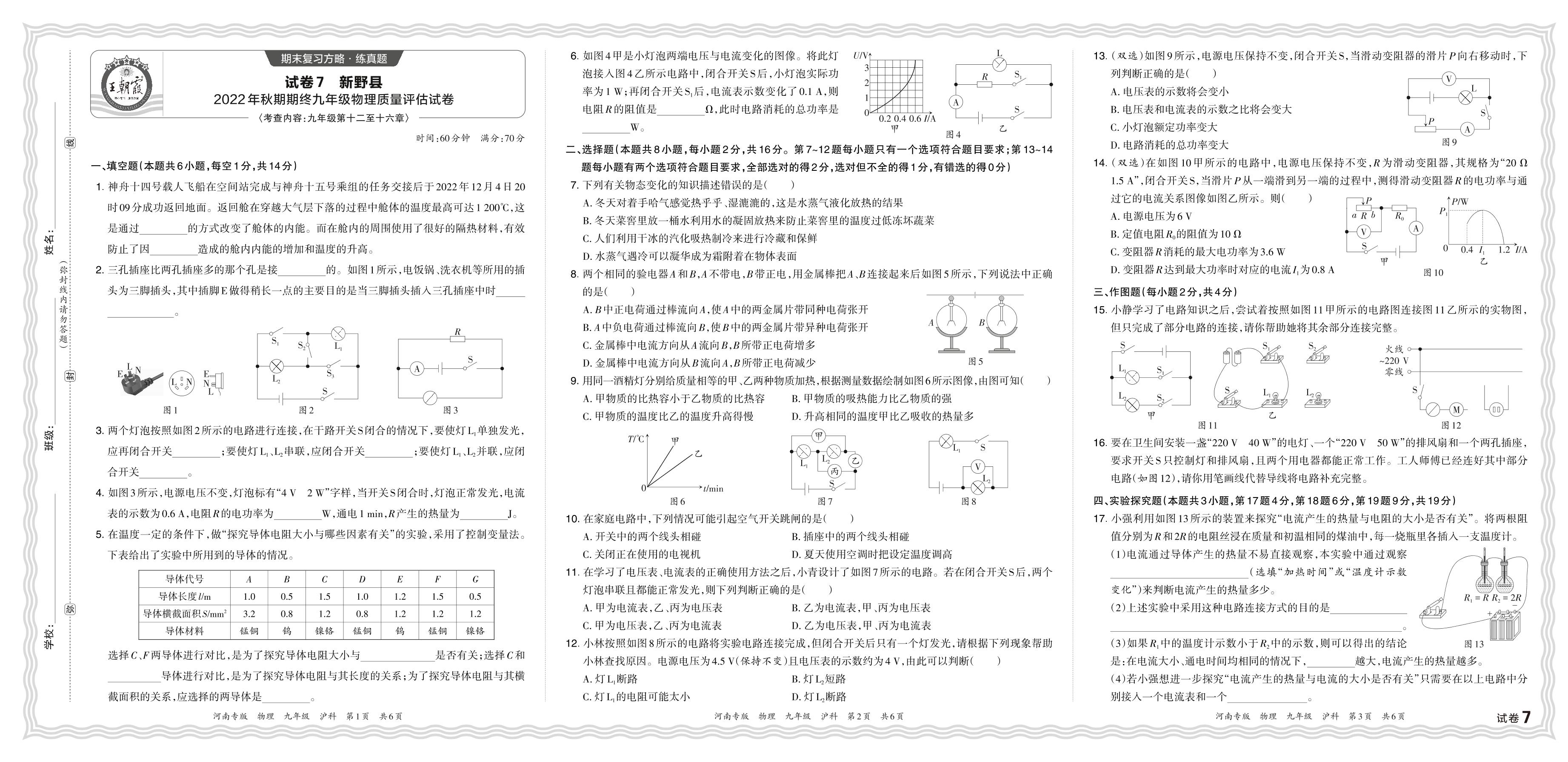 河南省南阳市新野县2022年秋期期终九年级物理质量评估试卷(沪科版)【7】