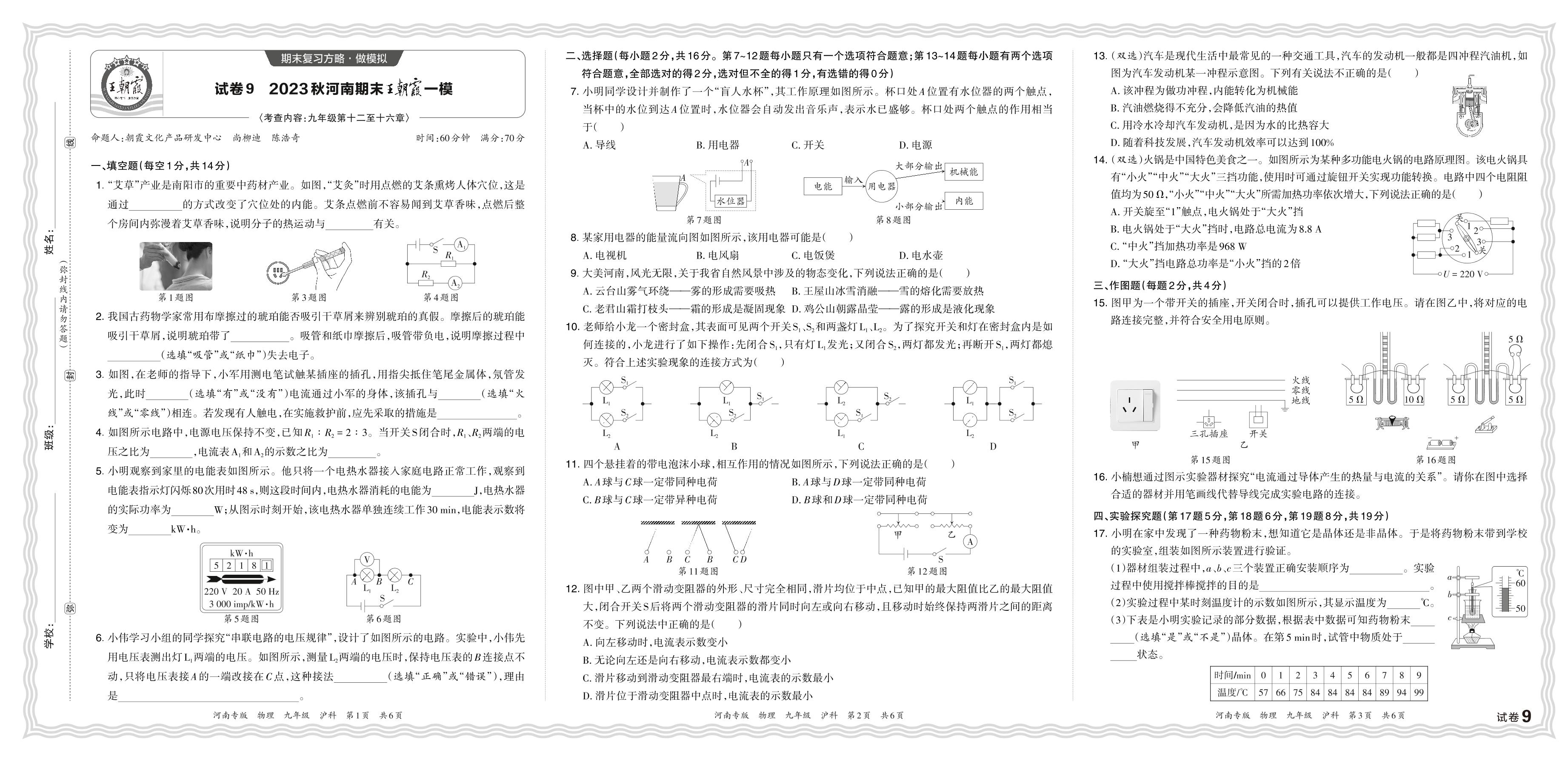 2023秋上册九年级物理沪科版 河南期末王朝霞一模