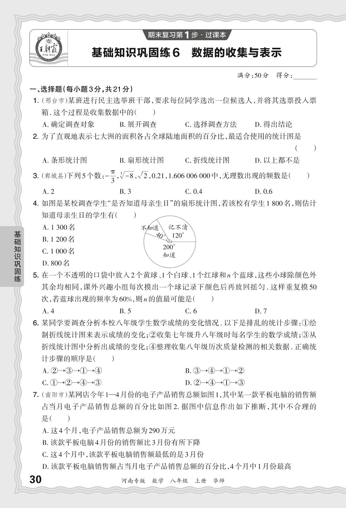 2023秋上册八年级数学华师版 期末过课本·基础知识巩固练 数据的收集与表示【6】