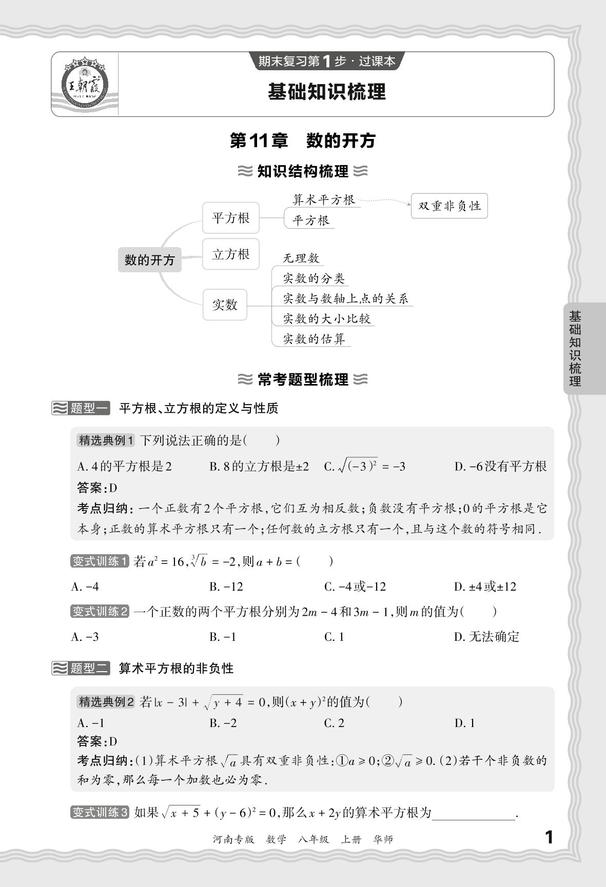 2023秋上册八年级数学华师版 期末过课本·基础知识梳理 第11章 数的开方