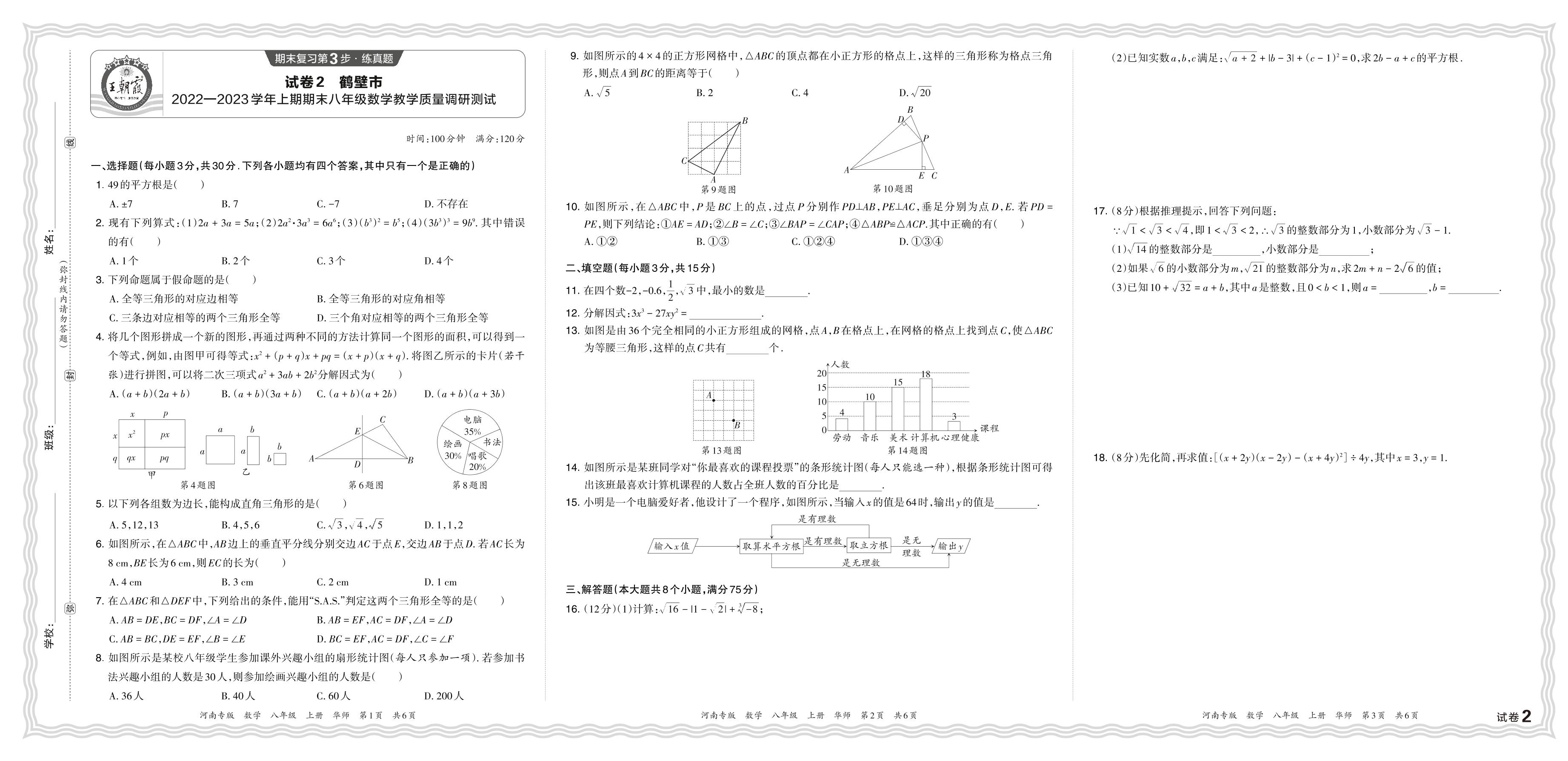 河南省鹤壁市2022—2023学年上期期末八年级数学教学质量调研测试(华师版)【2】