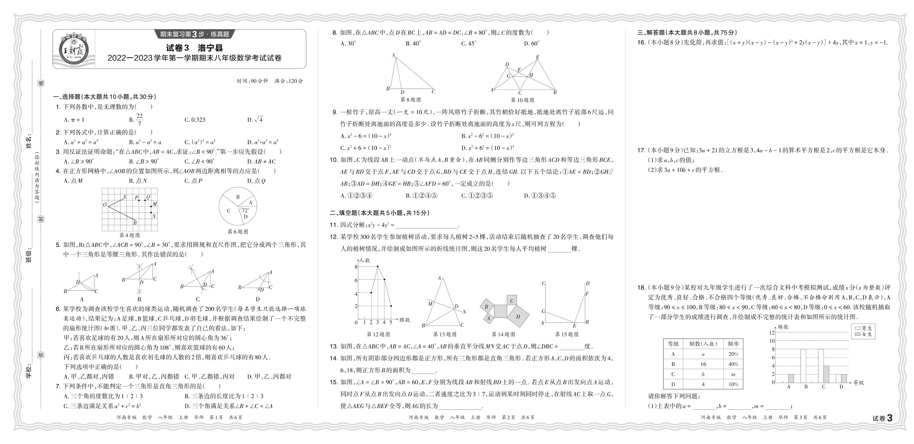 河南省洛阳市洛宁县2022—2023学年第一学期期末八年级数学考试试卷(华师版)【3】