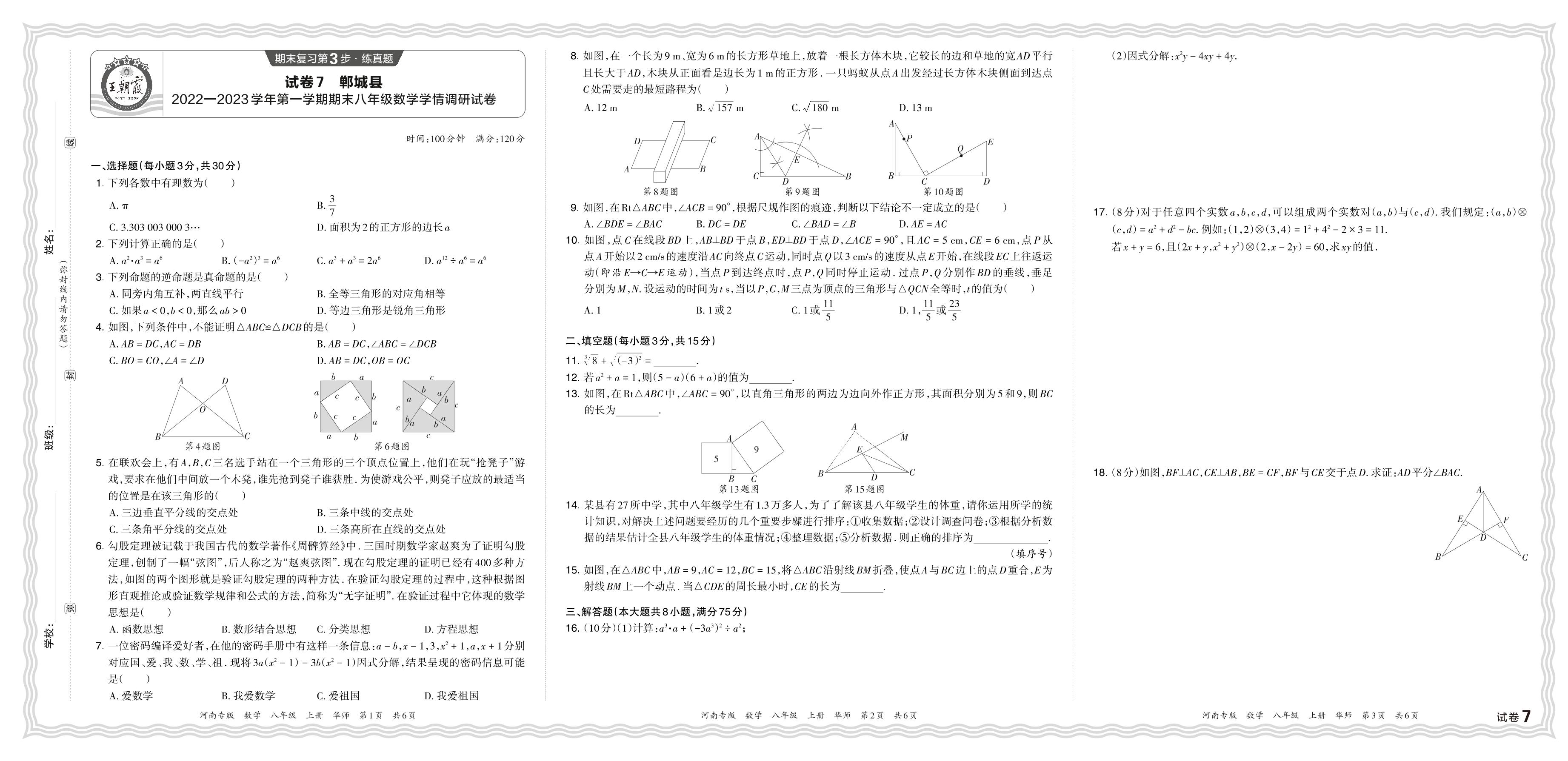 河南省周口市郸城县2022—2023学年第一学期期末八年级数学学情调研试卷(华师版)【7】