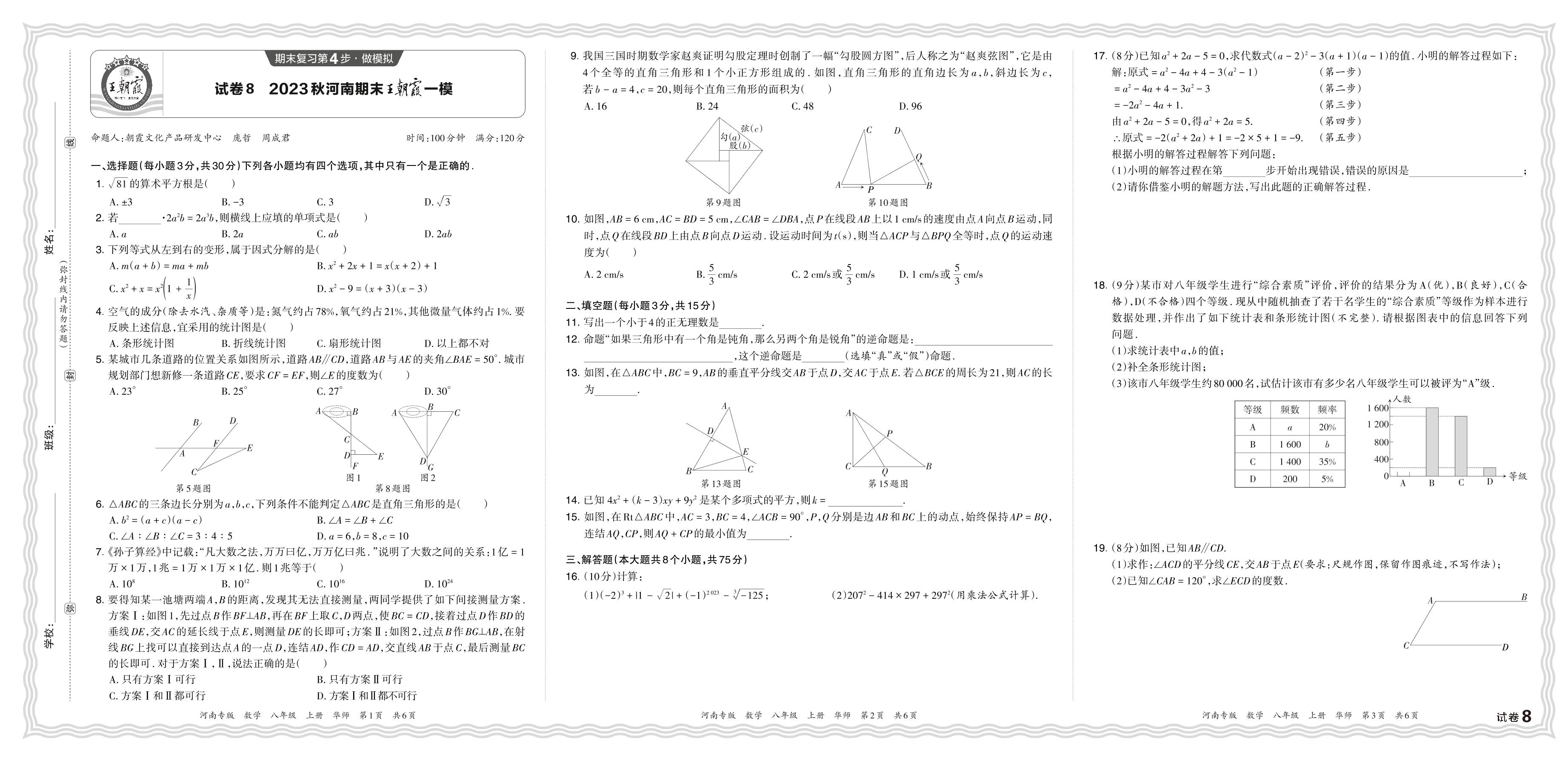 2023秋上册八年级数学华师版 河南期末王朝霞一模