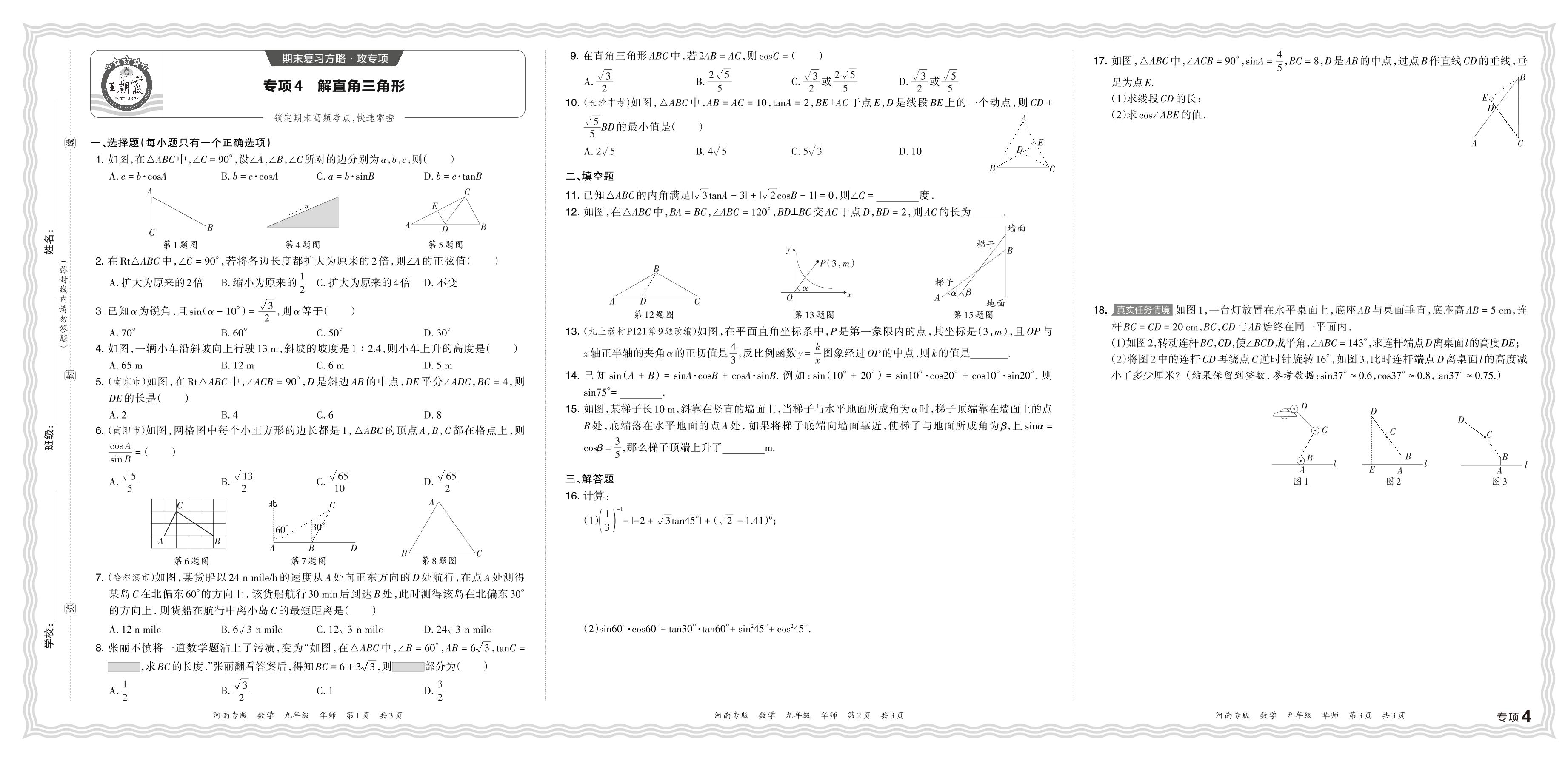 2023秋上册九年级数学华师版 期末专项卷·解直角三角形【4】