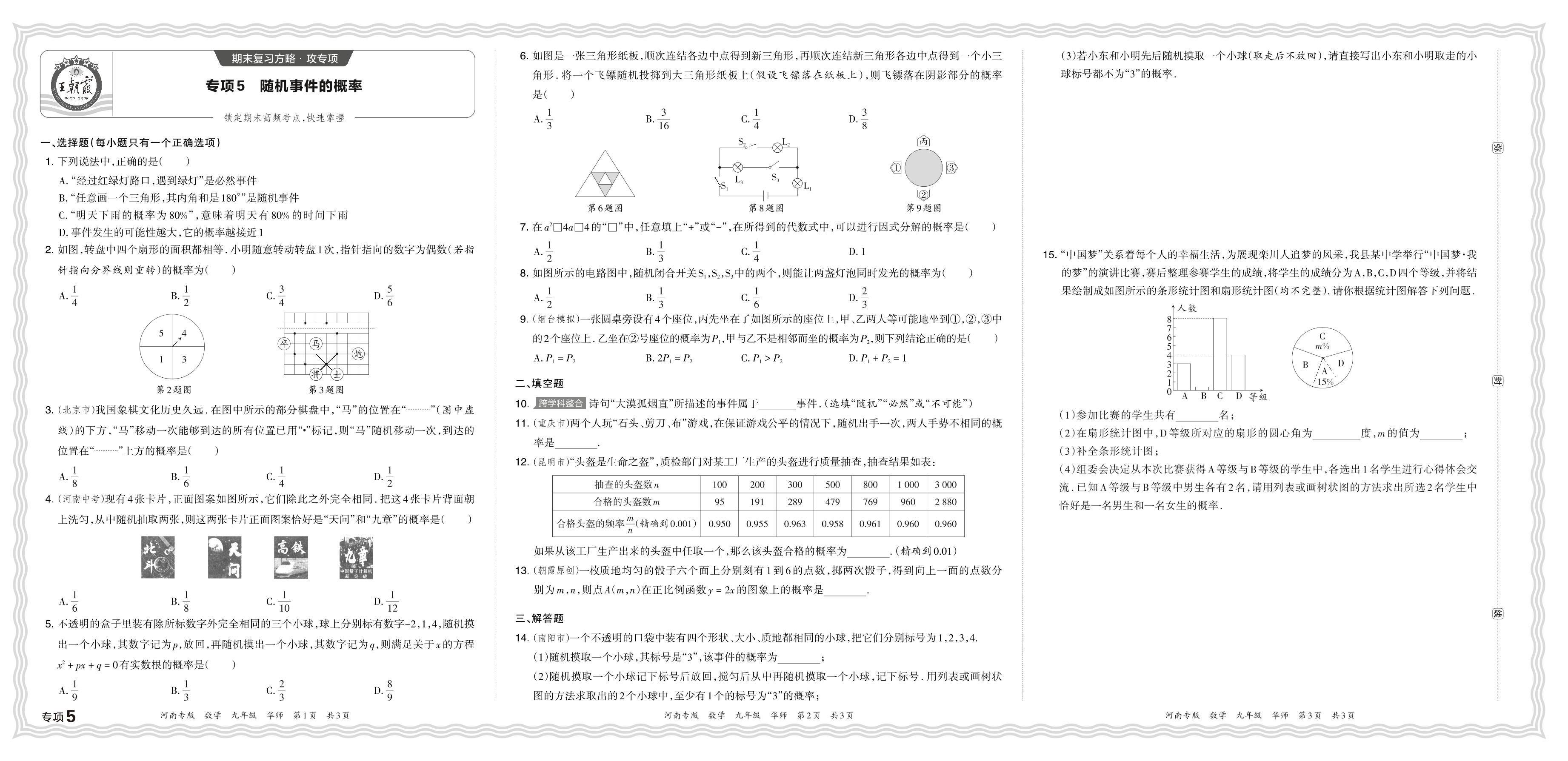 2023秋上册九年级数学华师版 期末专项卷·随机事件的概率【5】