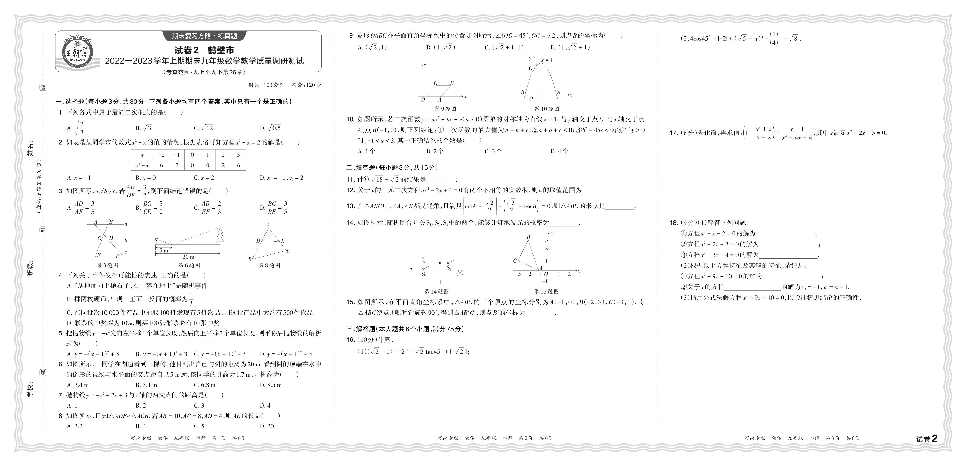 河南省鹤壁市2022—2023学年上期期末九年级数学教学质量调研测试(华师版)【2】