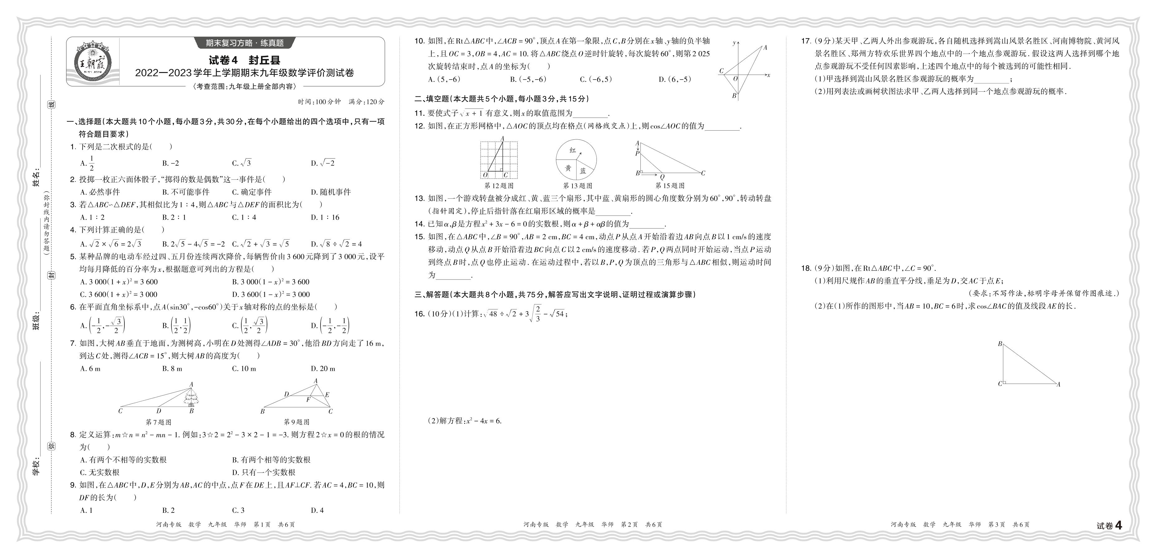 河南省新乡市封丘县2022—2023学年上学期期末九年级数学评价测试卷(华师版)【4】