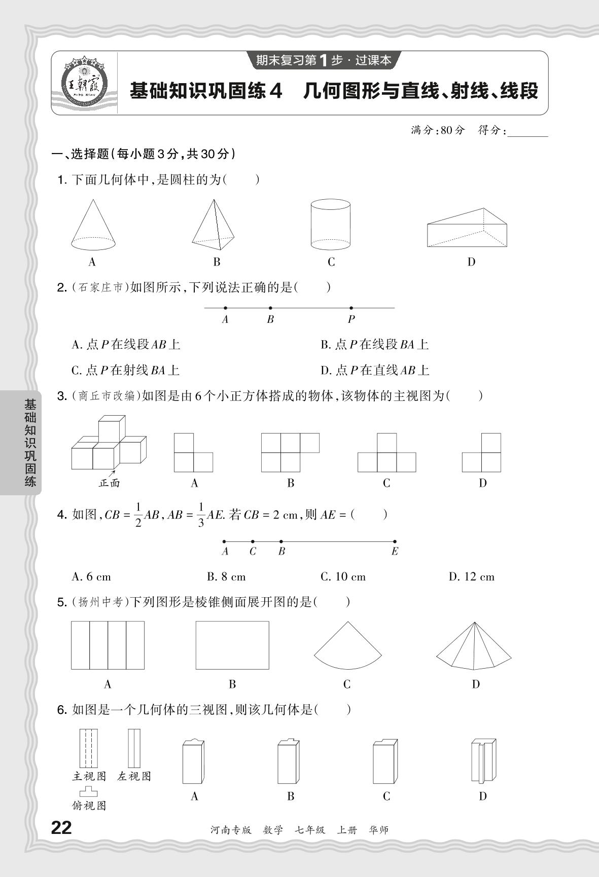 2023秋上册七年级数学华师版 期末过课本·基础知识巩固练 几何图形与直线、射线、线段【4】