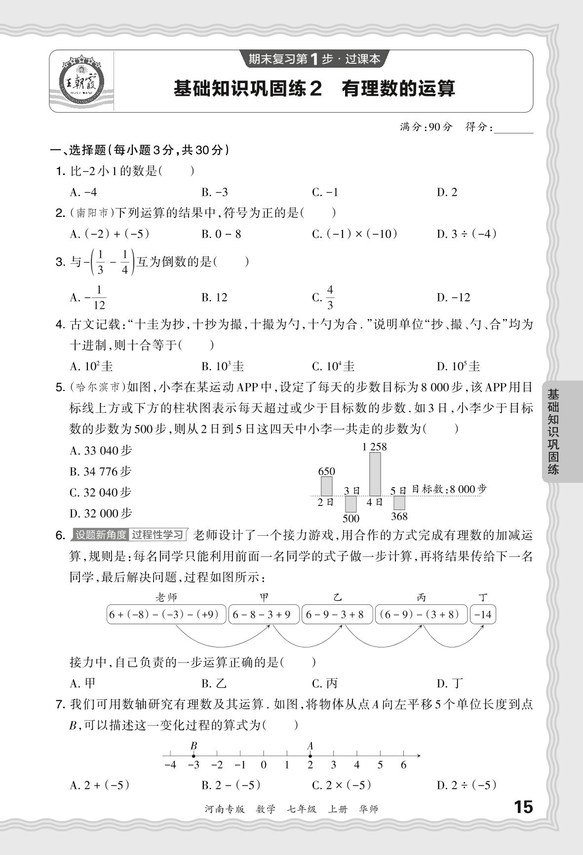 2023秋上册七年级数学华师版 期末过课本·基础知识巩固练 有理数的运算【2】