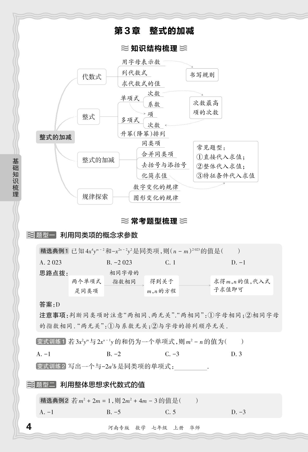 2023秋上册七年级数学华师版 期末过课本·基础知识梳理 第3章 整式的加减