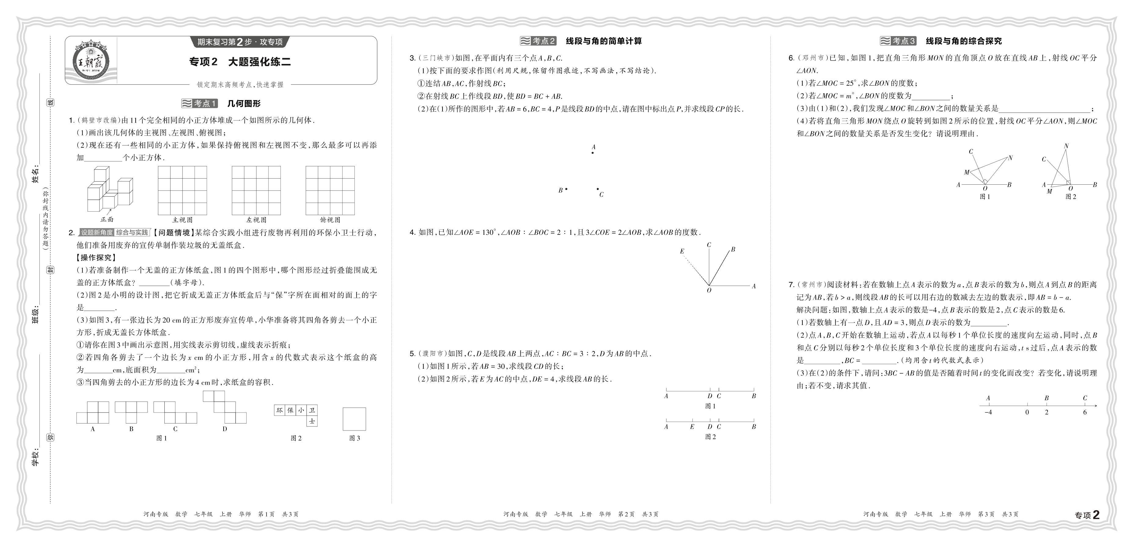 2023秋上册七年级数学华师版 期末专项卷·大题强化练二