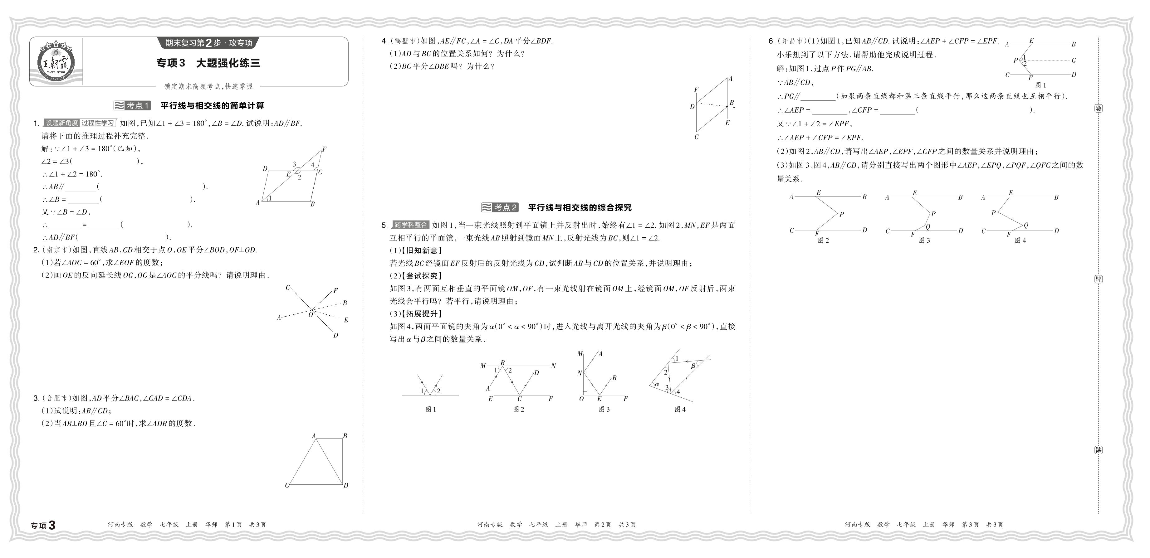 2023秋上册七年级数学华师版 期末专项卷·大题强化练三