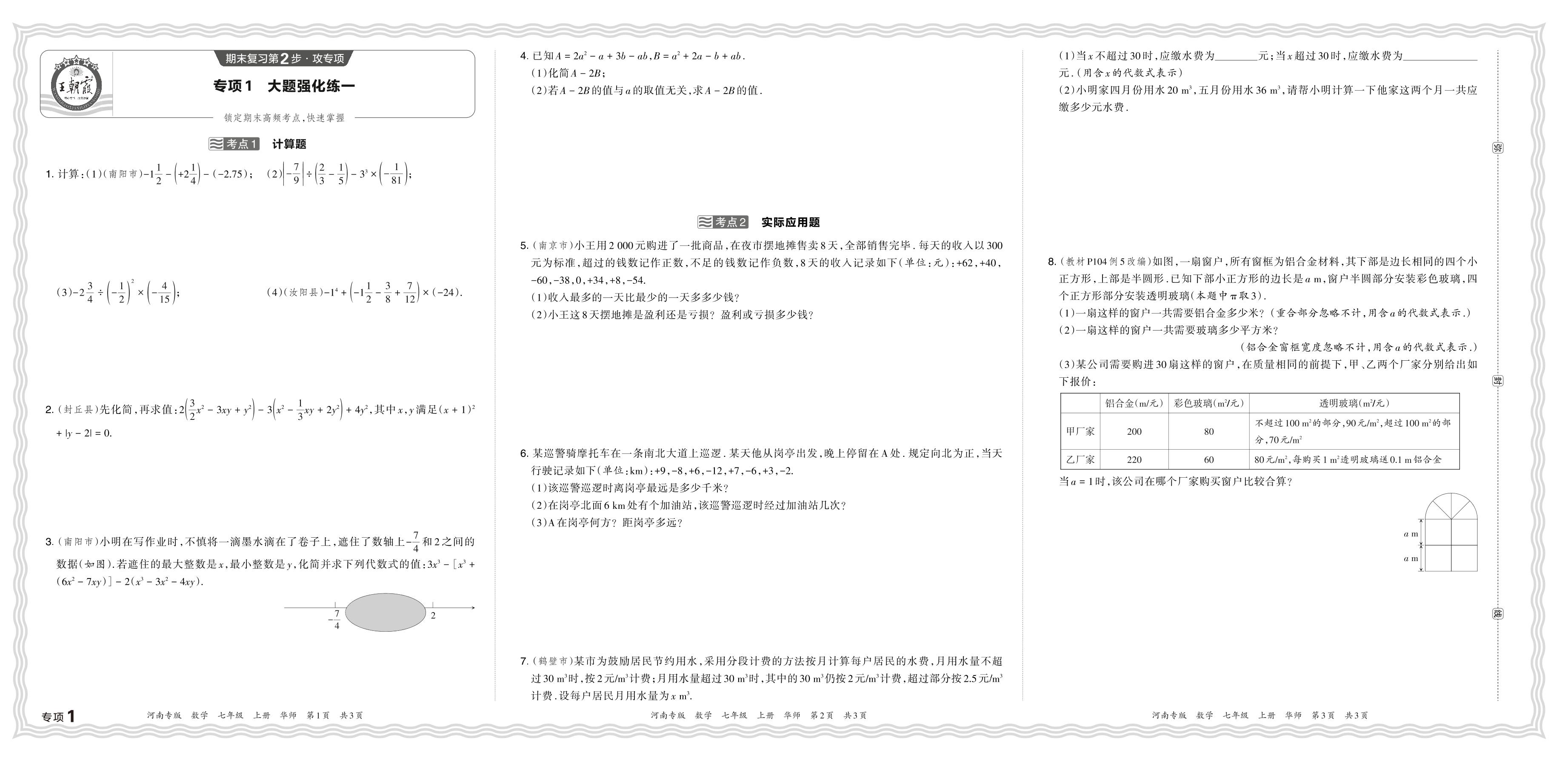 2023秋上册七年级数学华师版 期末专项卷·大题强化练一