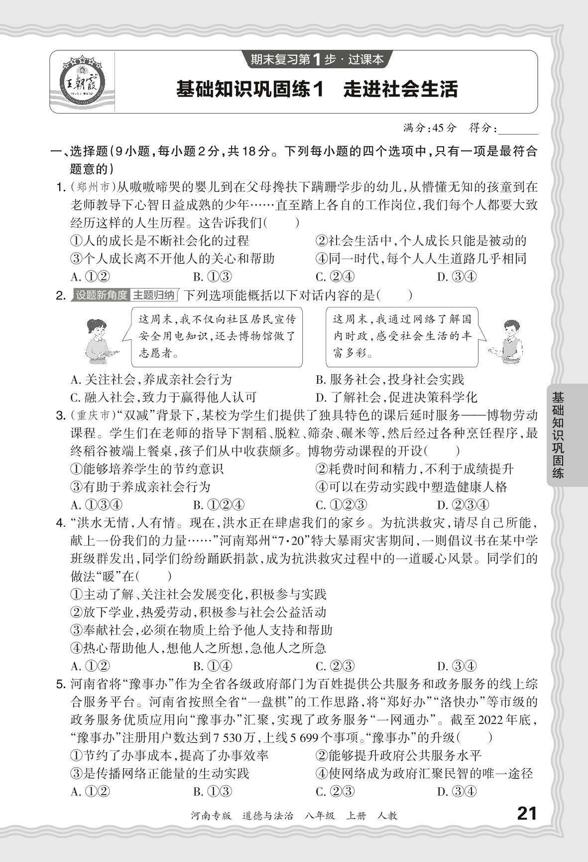 2023秋上册八年级道德与法治人教版 期末过课本·基础知识巩固练 走进社会生活_R231127093838238【1】