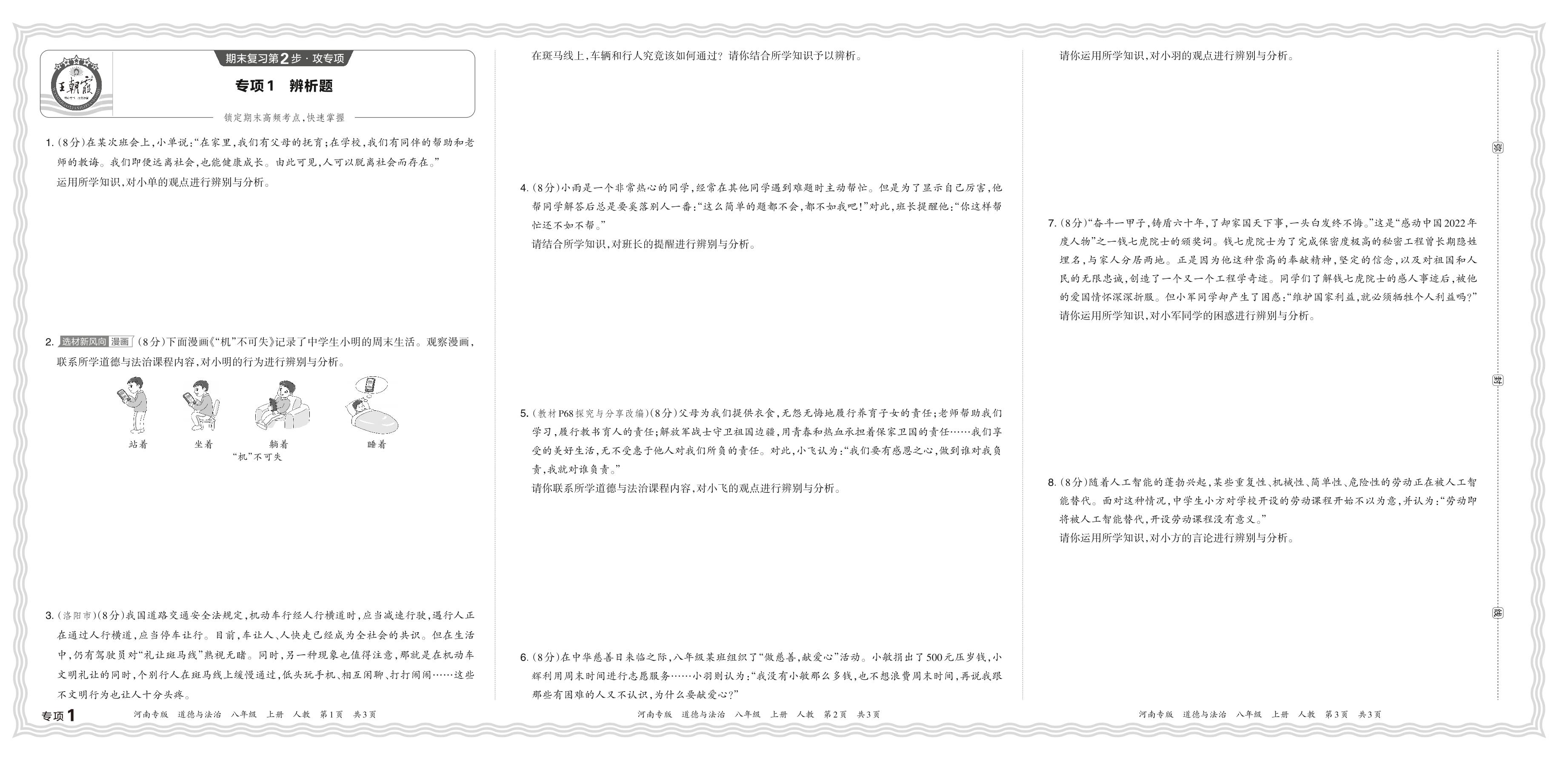 2023秋上册八年级道德与法治人教版 期末专项卷·辨析题【1】