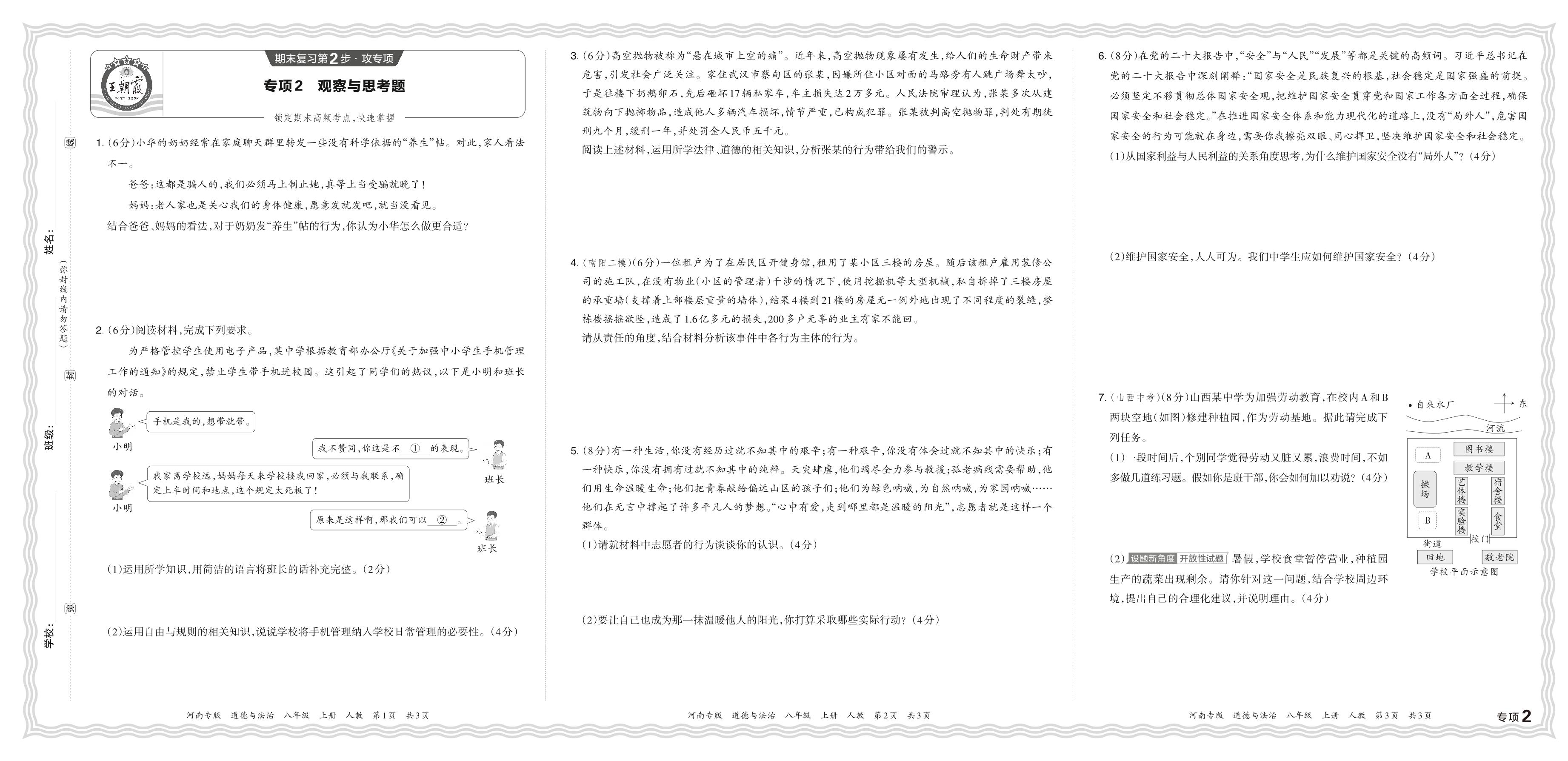 2023秋上册八年级道德与法治人教版 期末专项卷·观察与思考题【2】