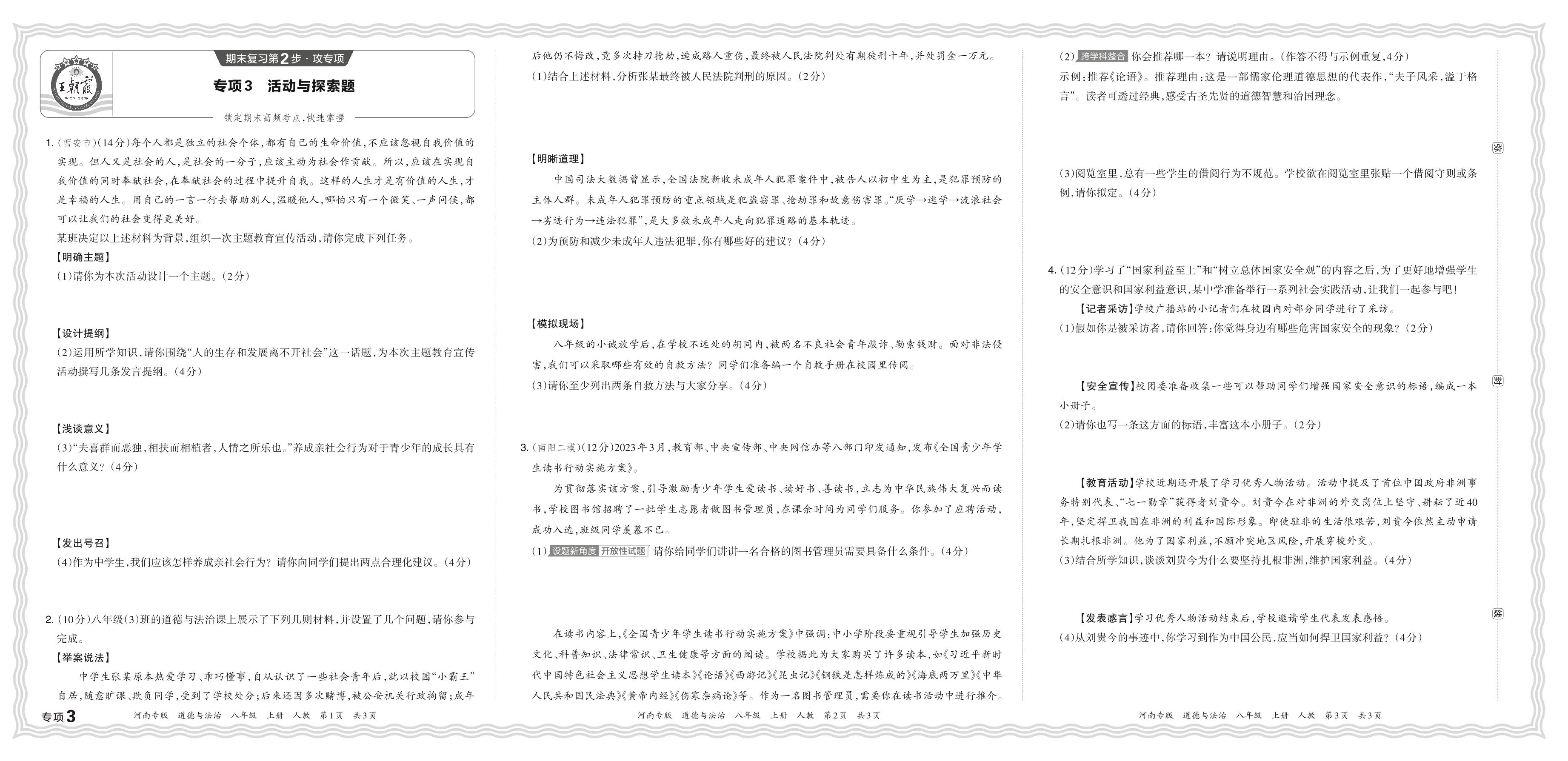 2023秋上册八年级道德与法治人教版 期末专项卷·活动与探索题【3】