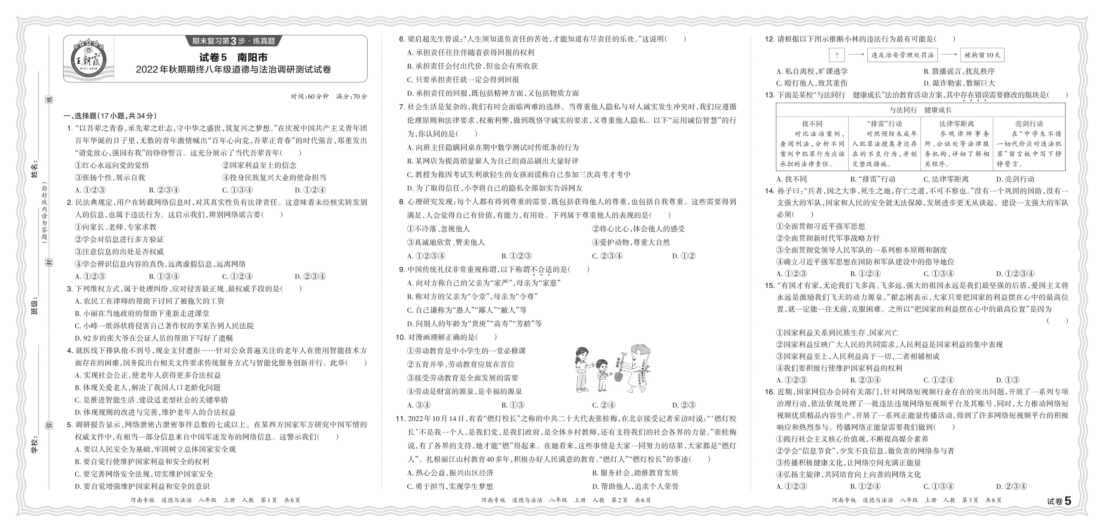 河南省南阳市2022年秋期期终八年级道德与法治调研测试试卷(人教版)【5】