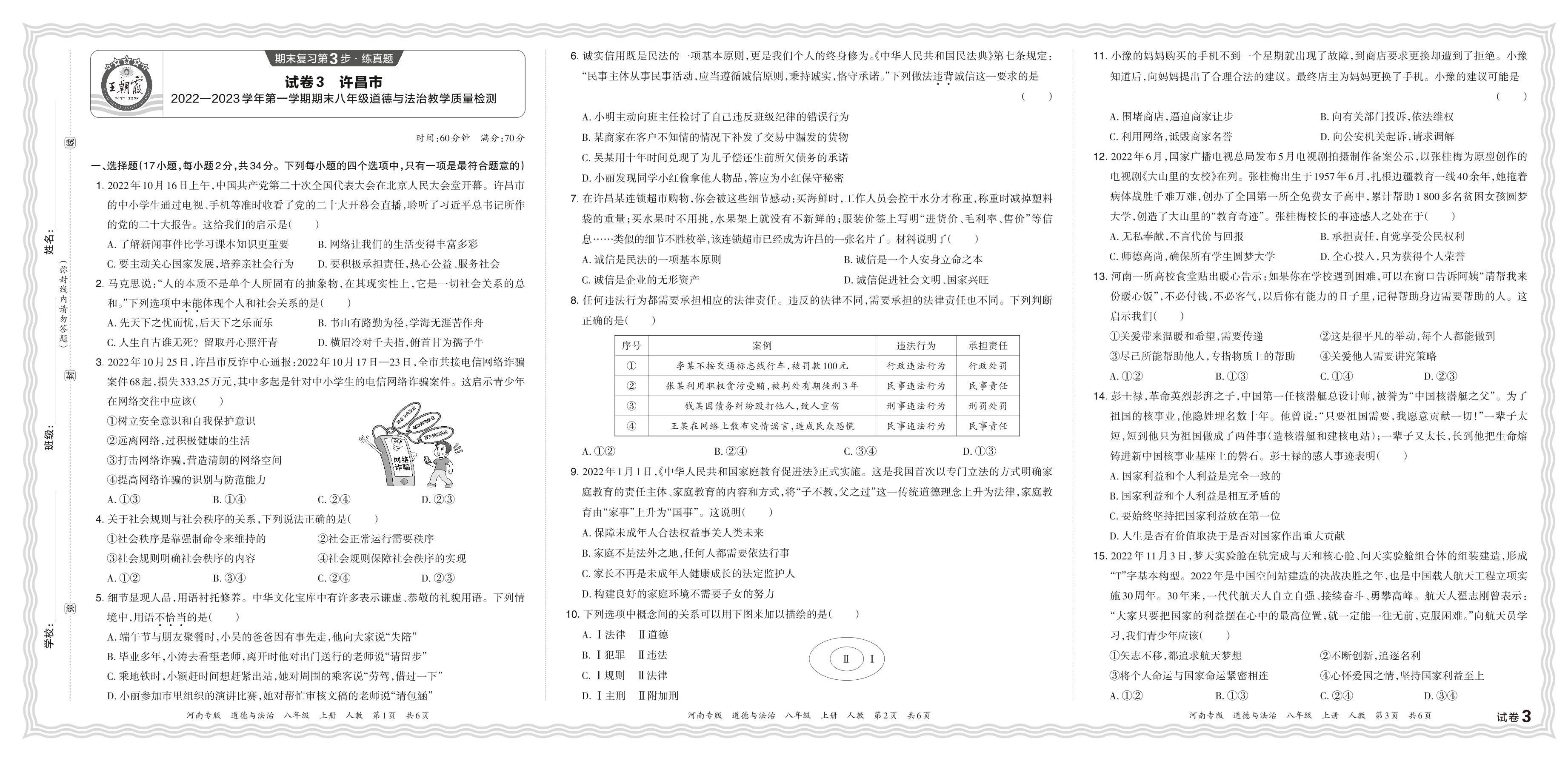 河南省许昌市2022—2023学年第一学期期末八年级道德与法治教学质量检测(人教版)【3】