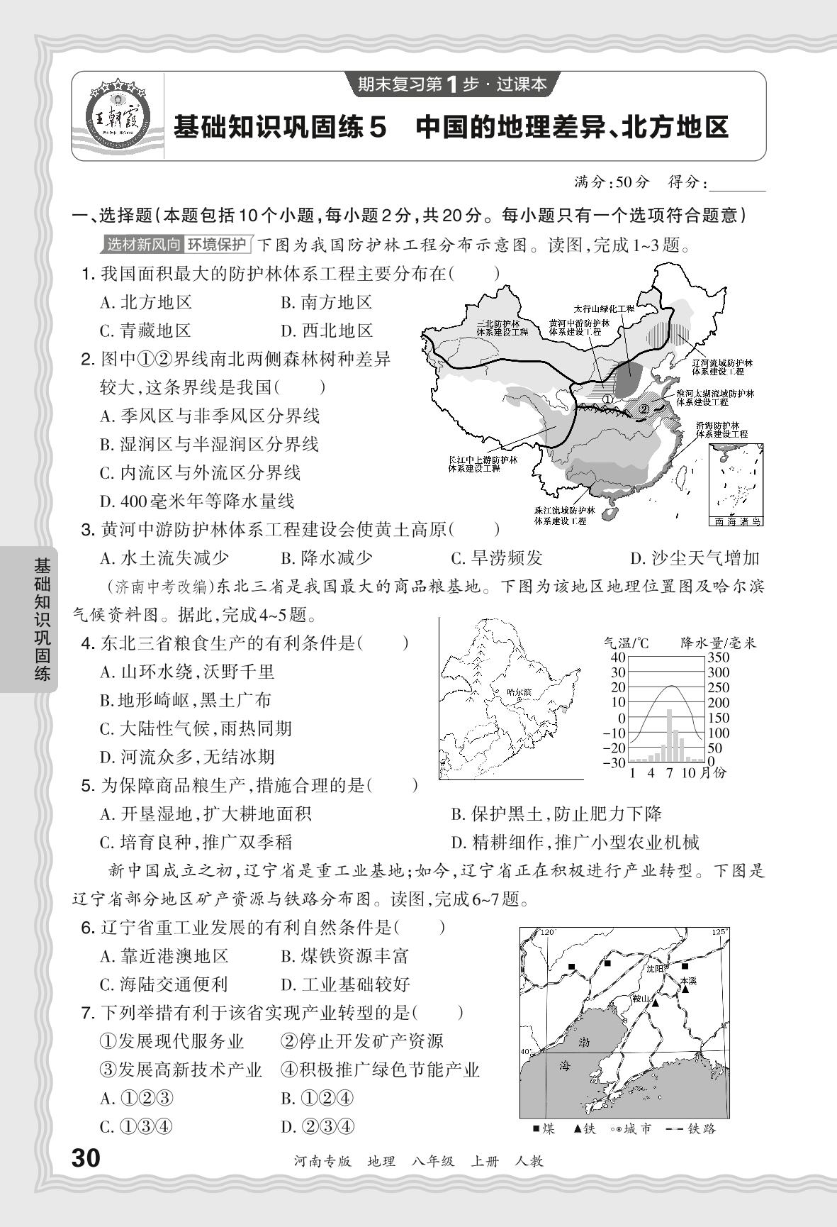 2023秋上册八年级地理人教版 期末过课本·基础知识巩固练 中国的地理差异、北方地区【5】