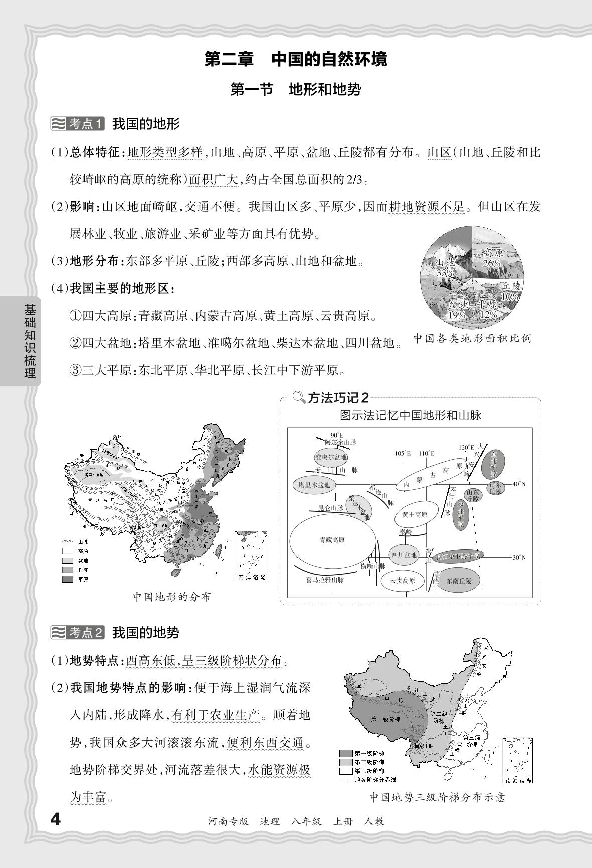 2023秋上册八年级地理人教版 期末过课本·基础知识梳理 第二章 中国的自然环境