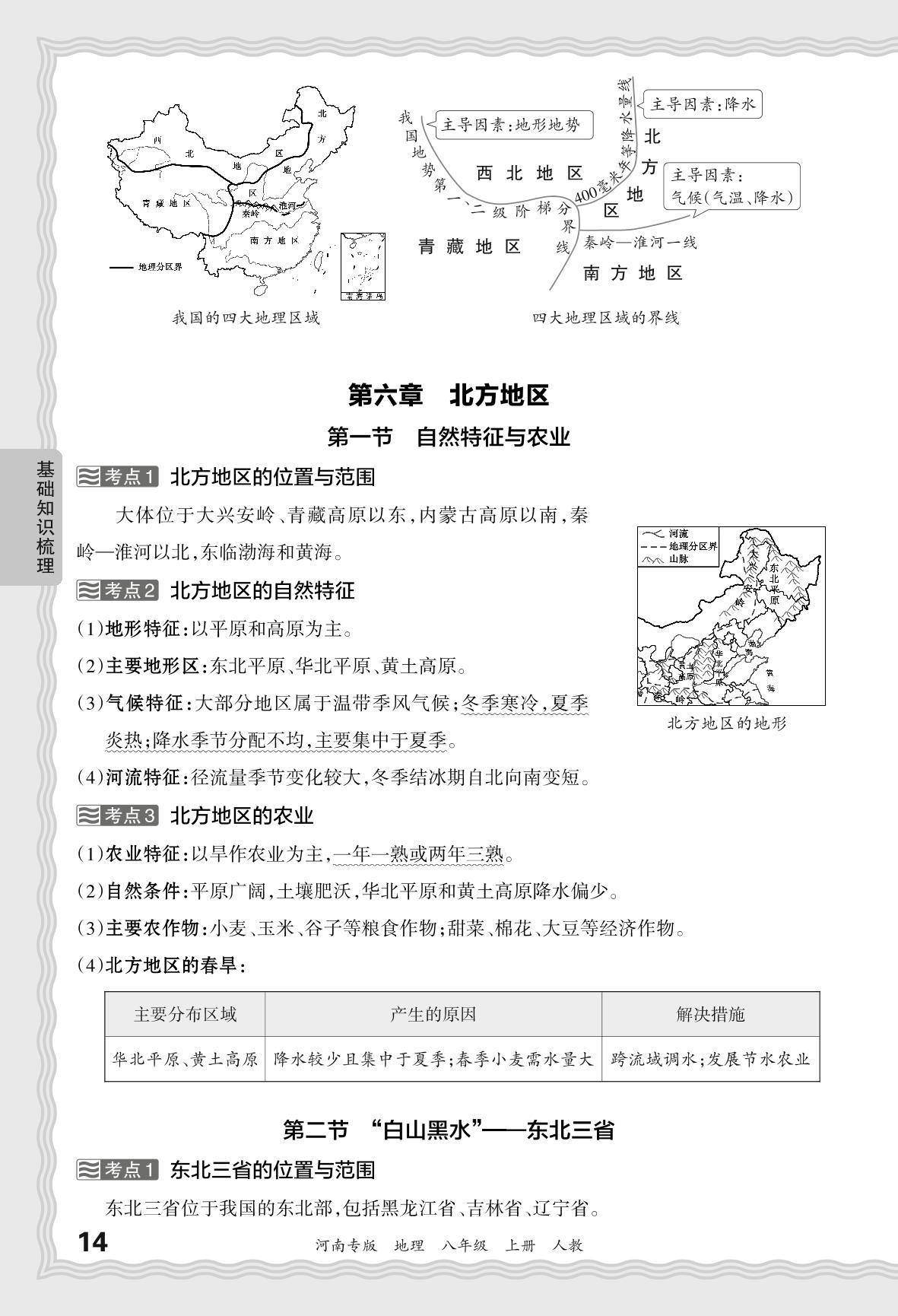 2023秋上册八年级地理人教版 期末过课本·基础知识梳理 第六章 北方地区