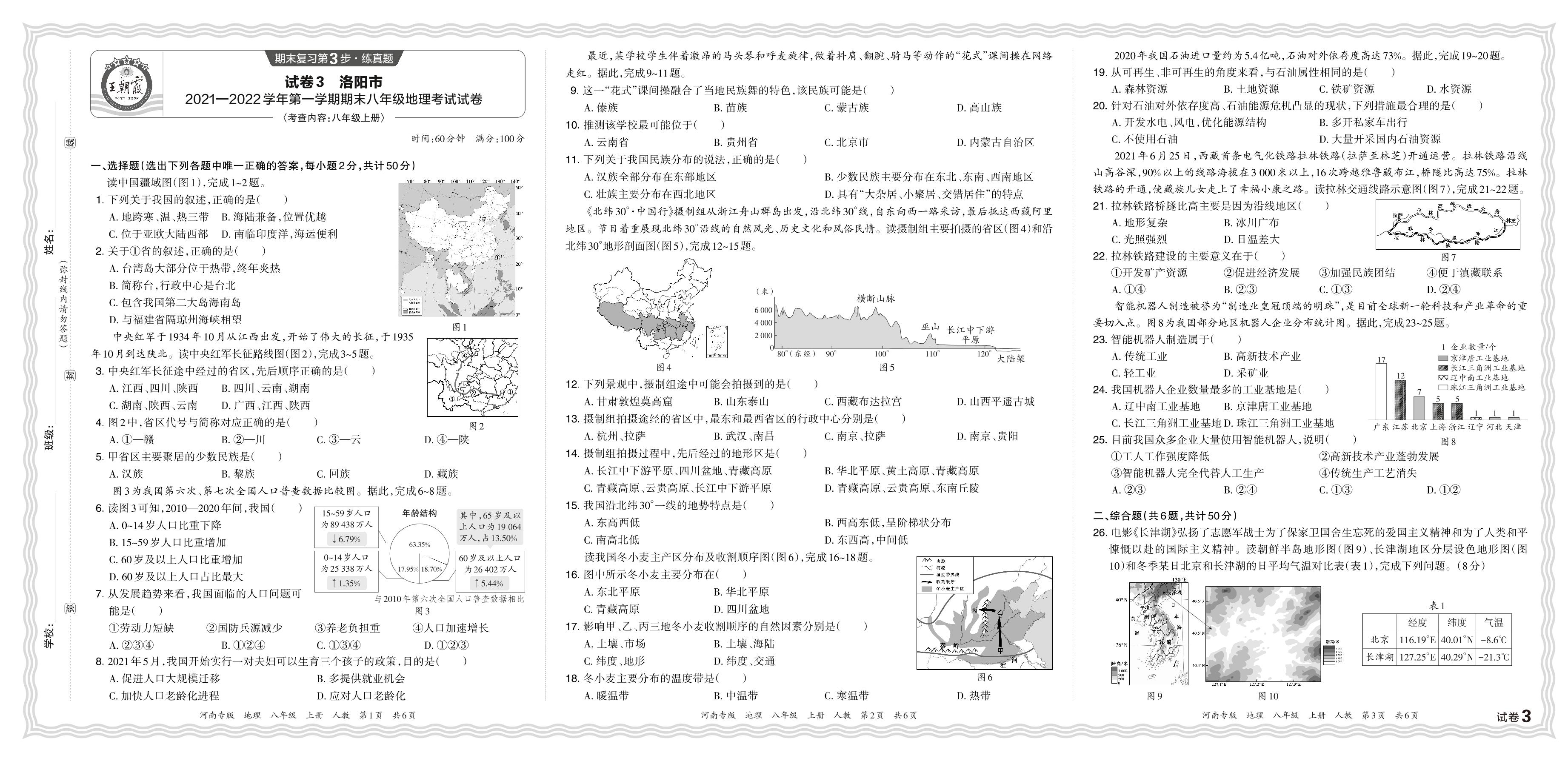 河南省洛阳市2021—2022学年第一学期期末八年级地理考试试卷(人教版)【3】