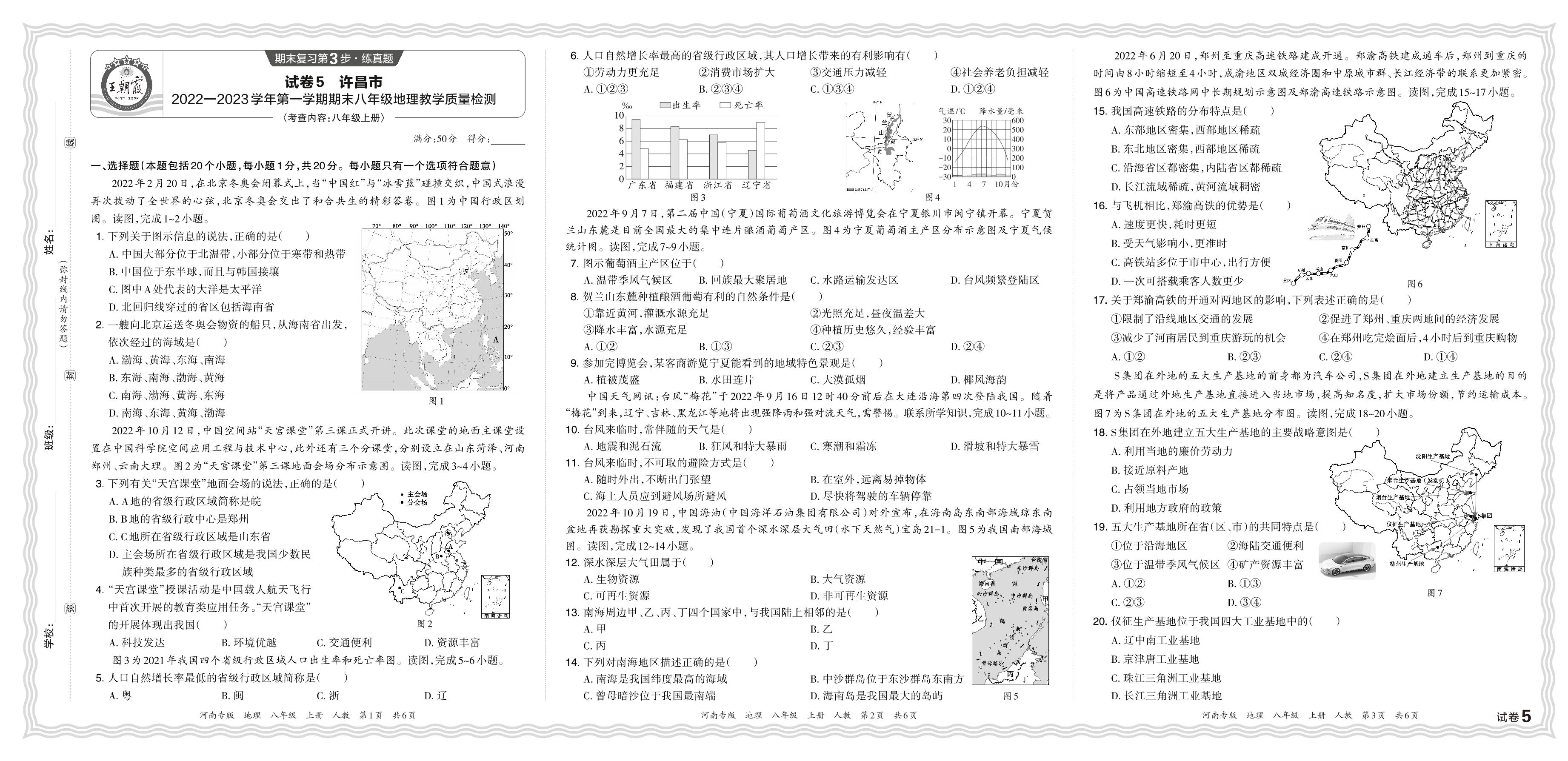 河南省许昌市2022—2023学年第一学期期末八年级地理教学质量检测(人教版)【5】