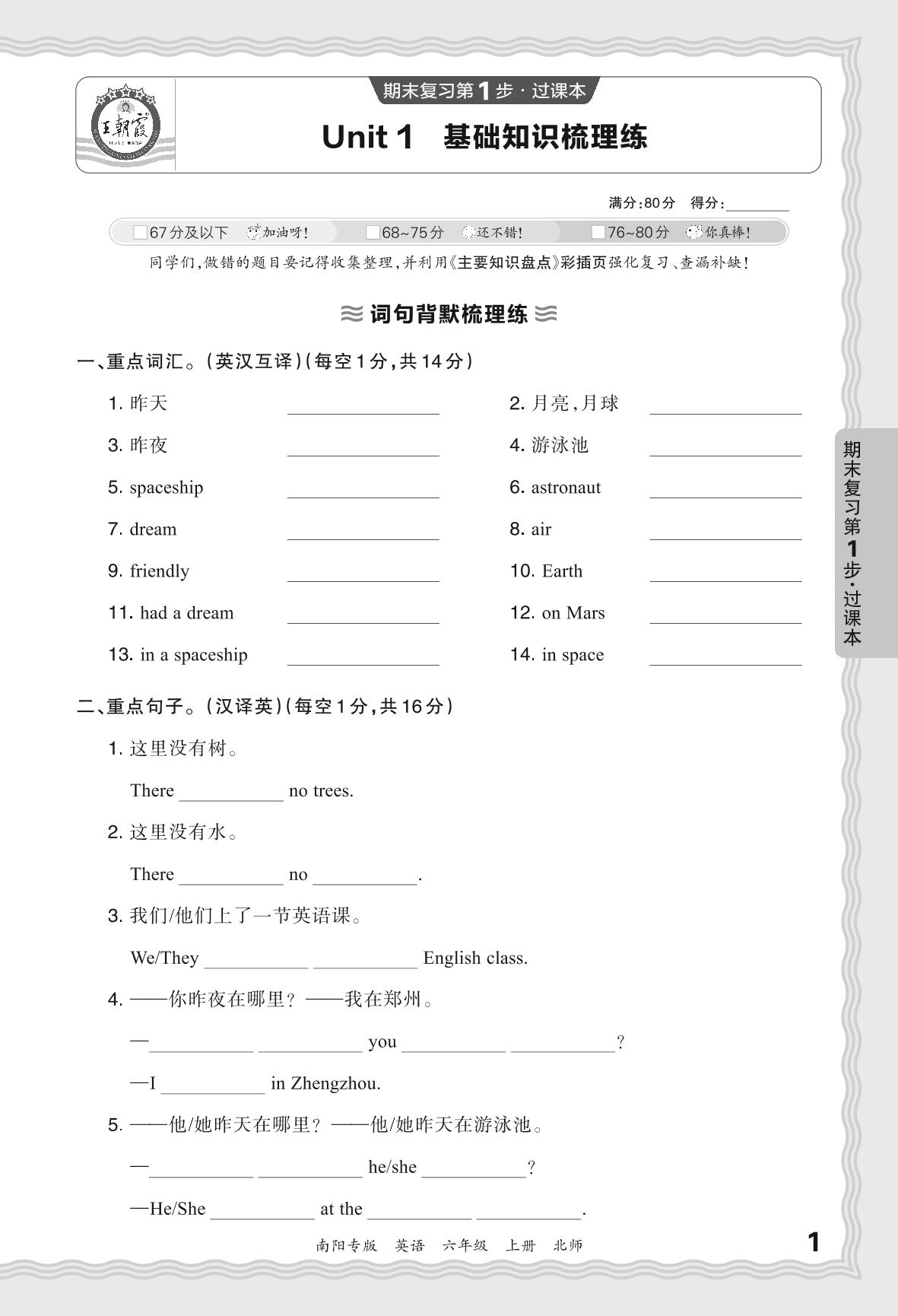 2023秋上册六年级英语北师版 期末过课本·Unit 1 基础知识梳理练