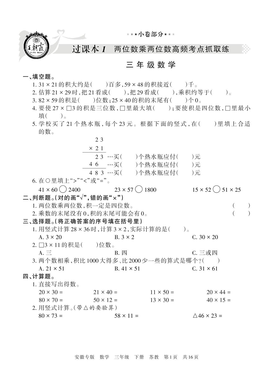 王朝霞期末小卷三年级下册数学(苏教版)_R21080484959【0】