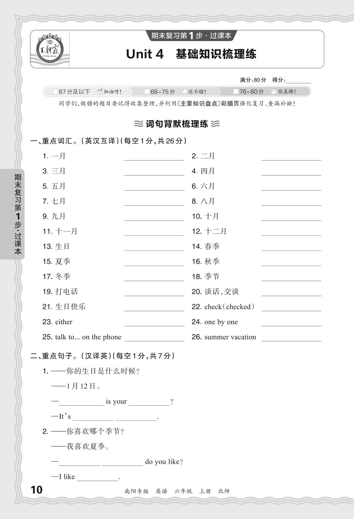 2023秋上册六年级英语北师版 期末过课本·Unit 4 基础知识梳理练