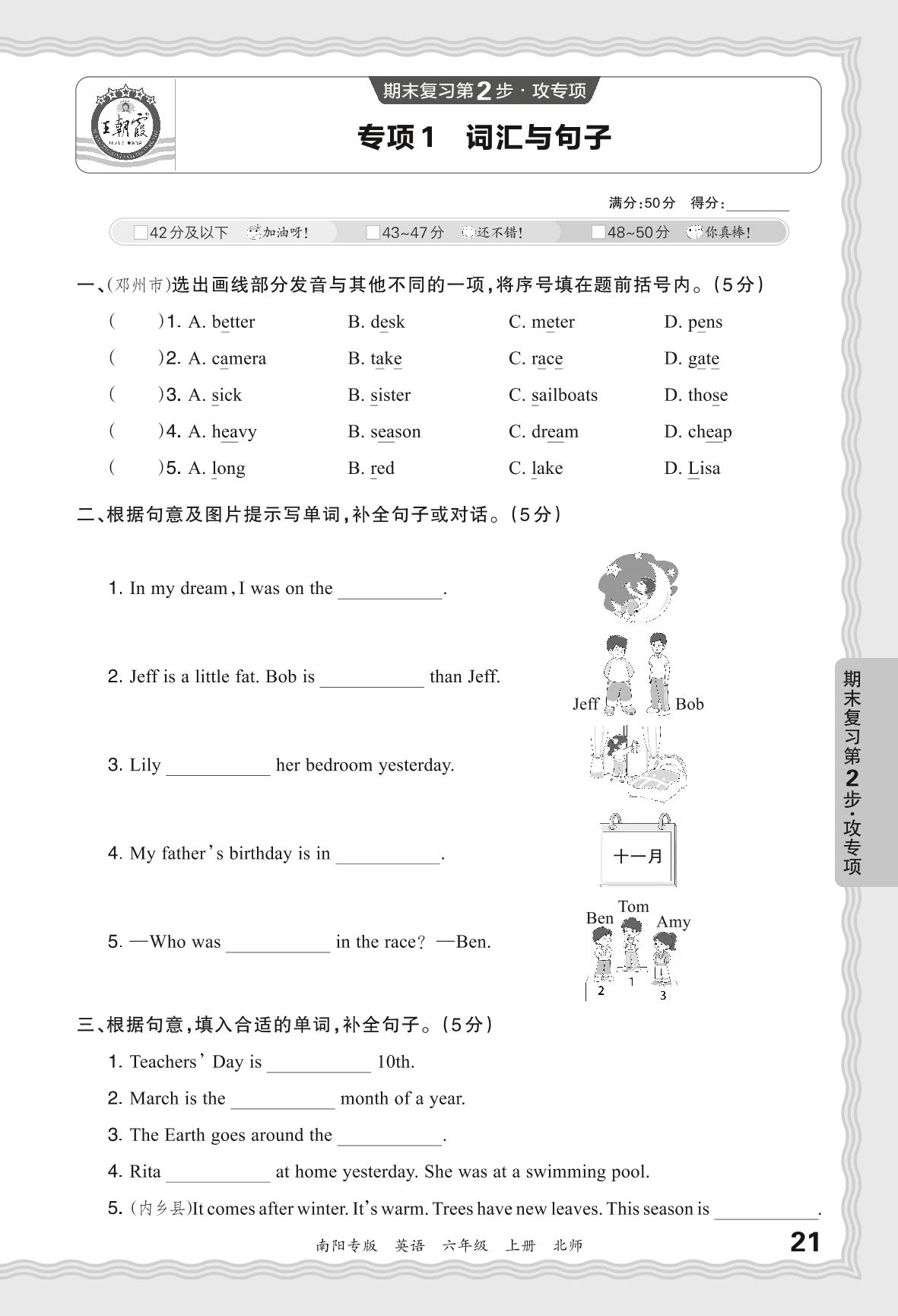 六年级英语北师版上册专项卷