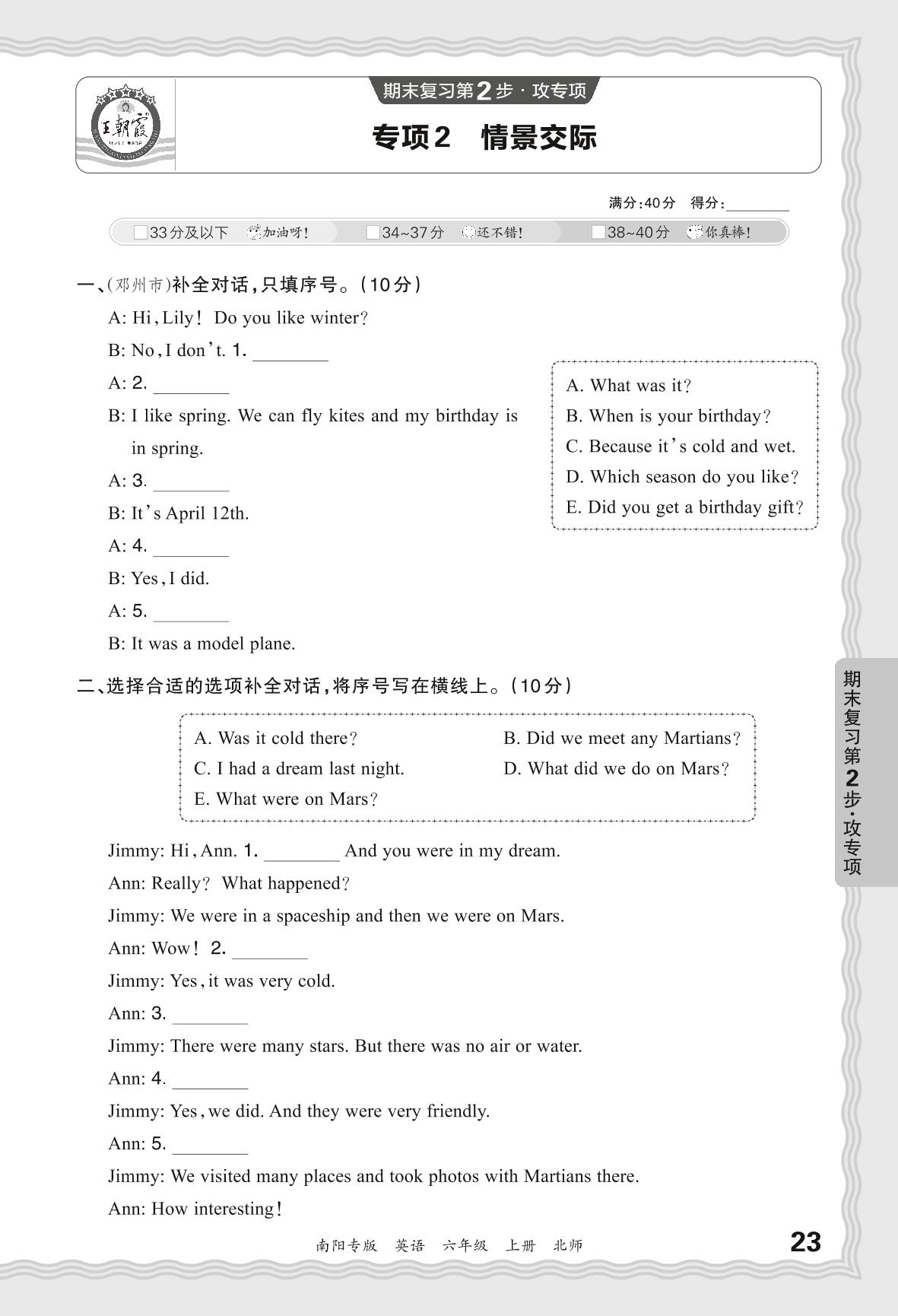 2023秋上册六年级英语北师版 期末专项卷·情景交际【2】