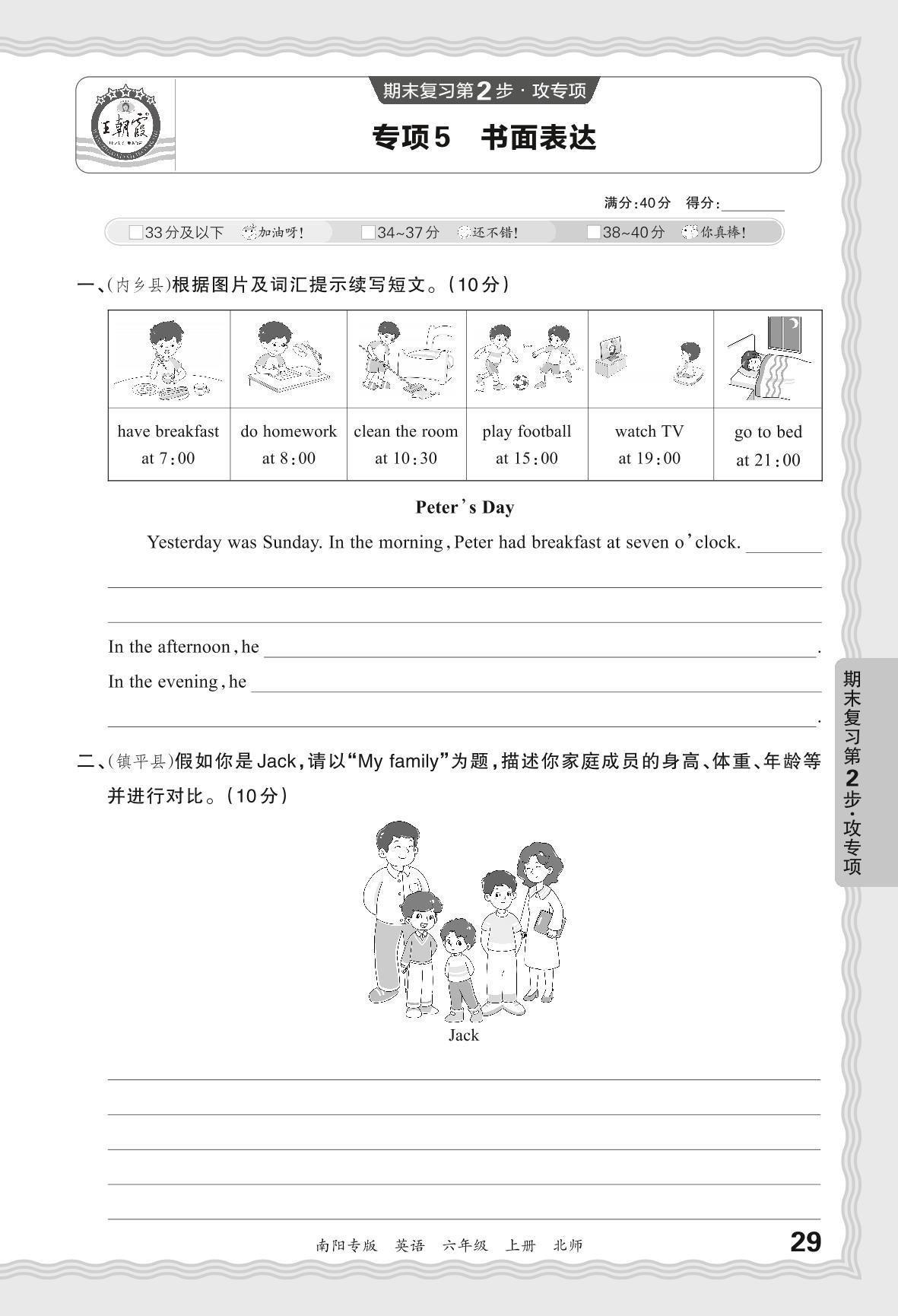 2023秋上册六年级英语北师版 期末专项卷·书面表达【5】