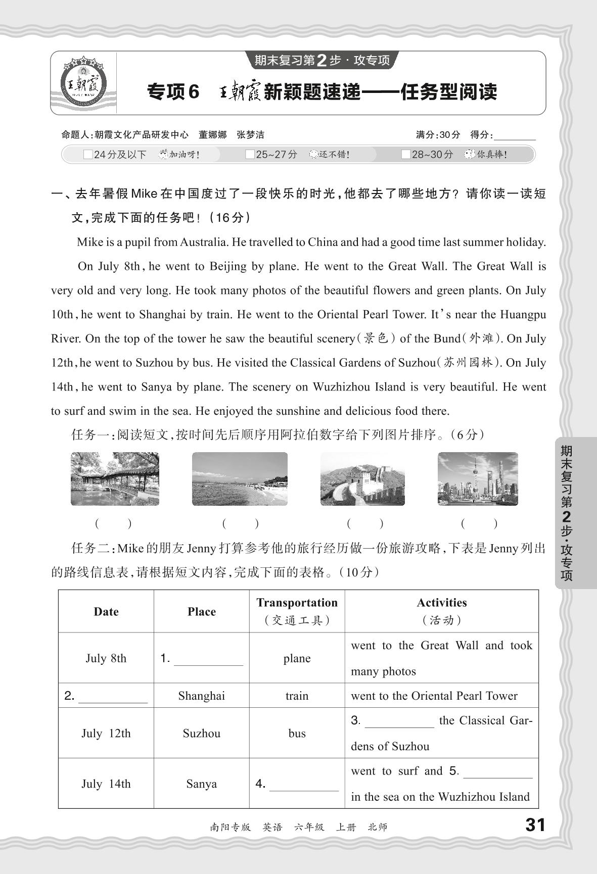 2023秋上册六年级英语北师版 期末专项卷·王朝霞新颖题速递——任务型阅读【6】