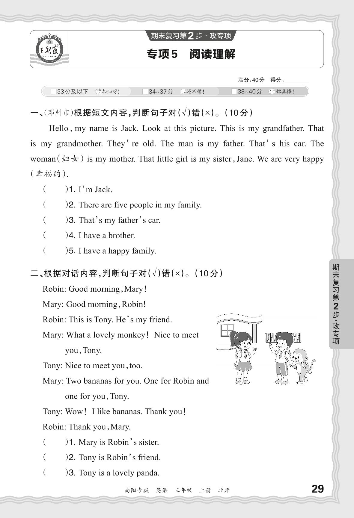 2023秋上册三年级英语北师版 期末专项卷·阅读理解【5】