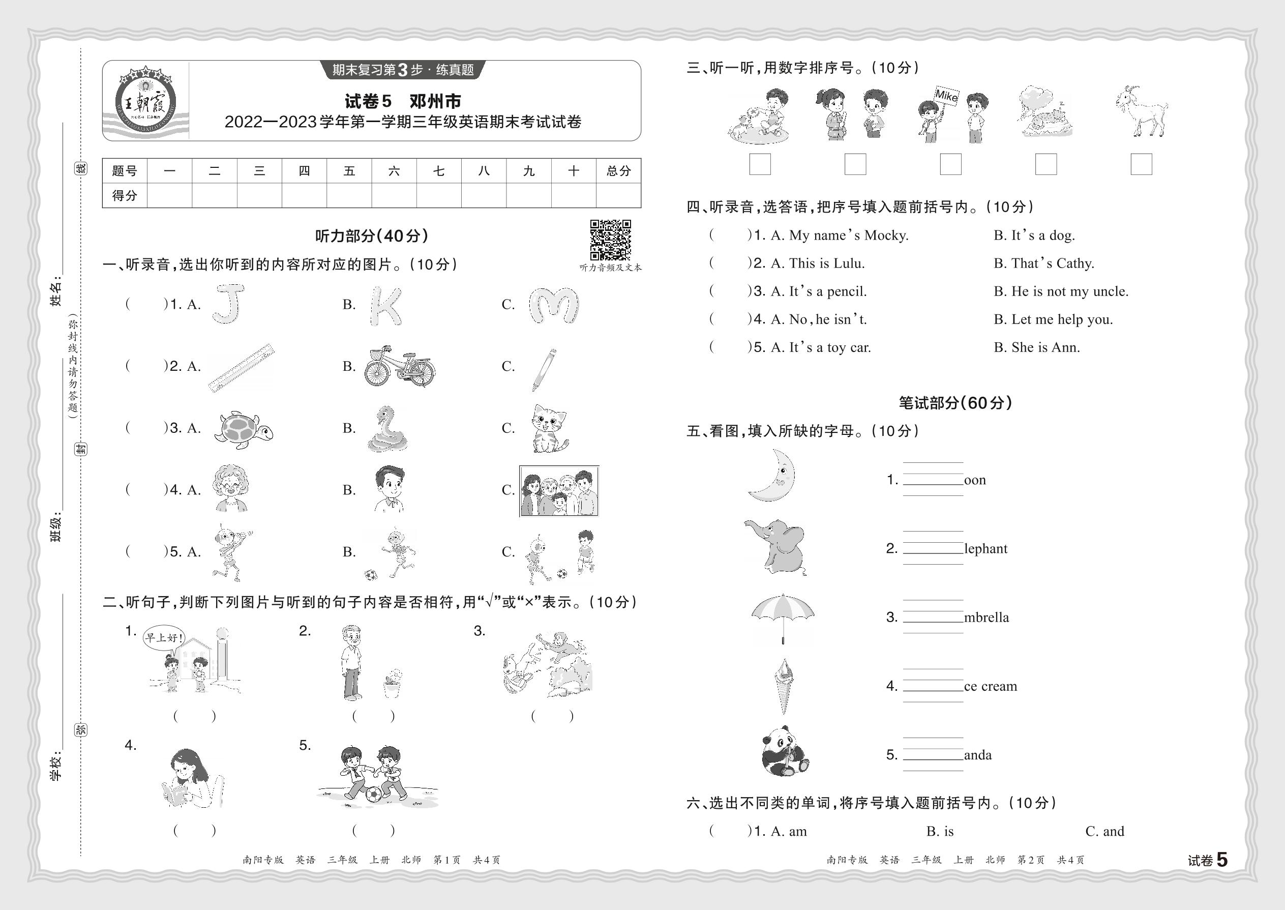 河南省南阳市邓州市2022—2023学年第一学期三年级英语期末考试试卷(北师版)【5】