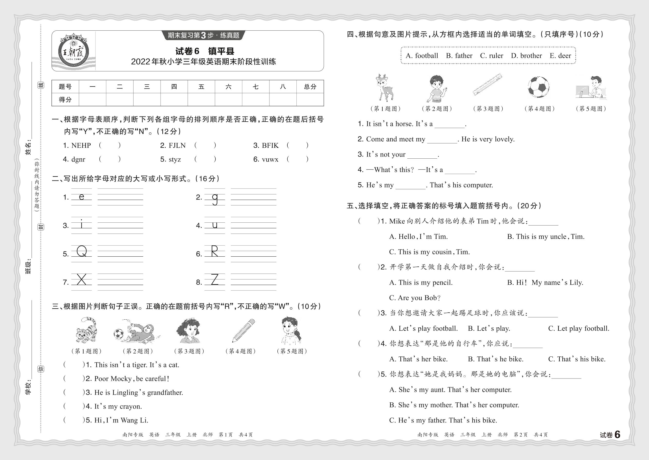河南省南阳市镇平县2022年秋期小学三年级英语期末阶段性训练(北师版)【6】